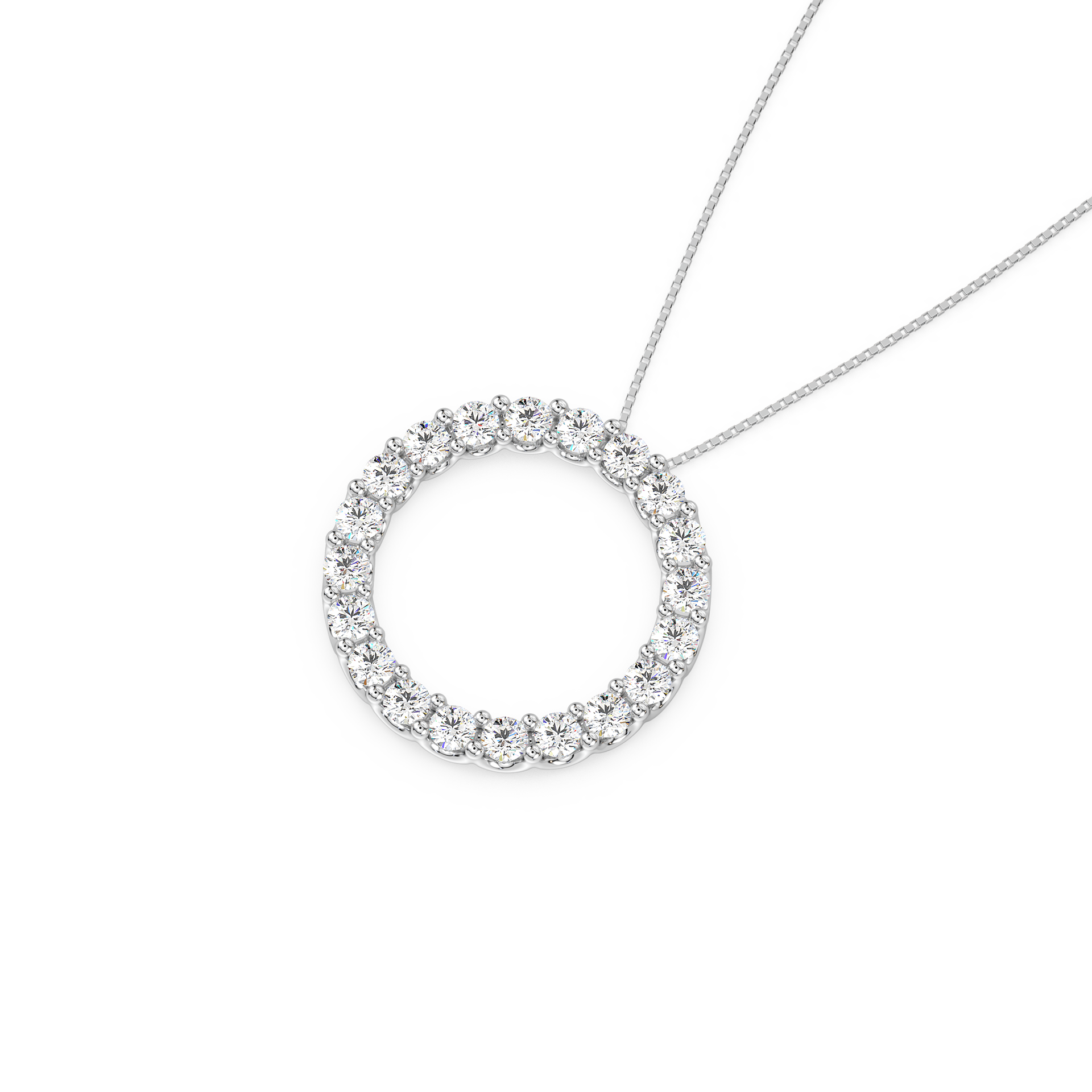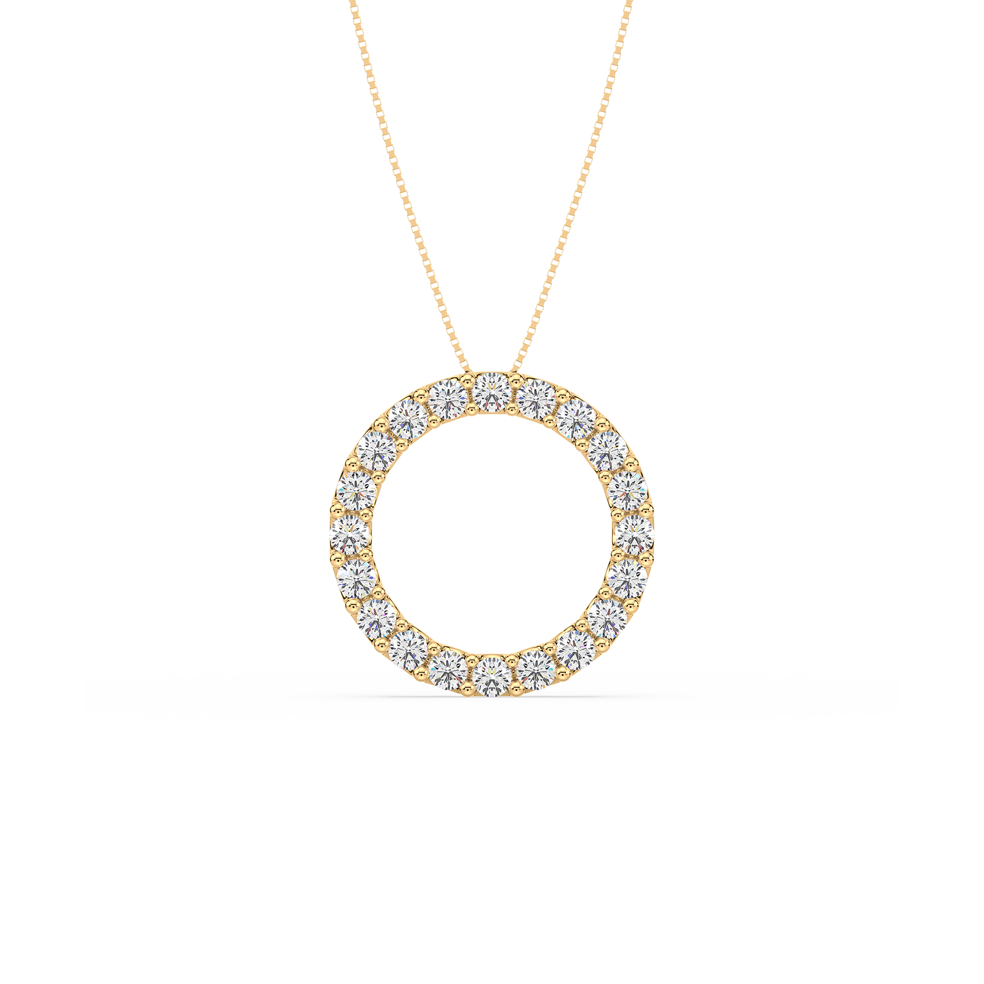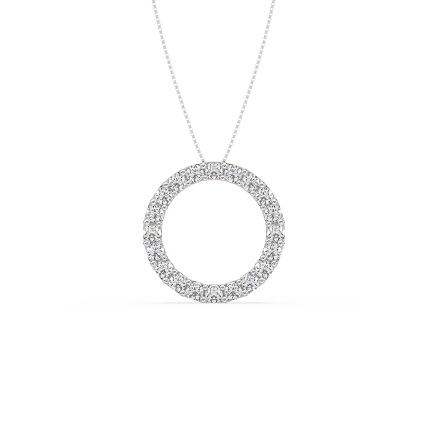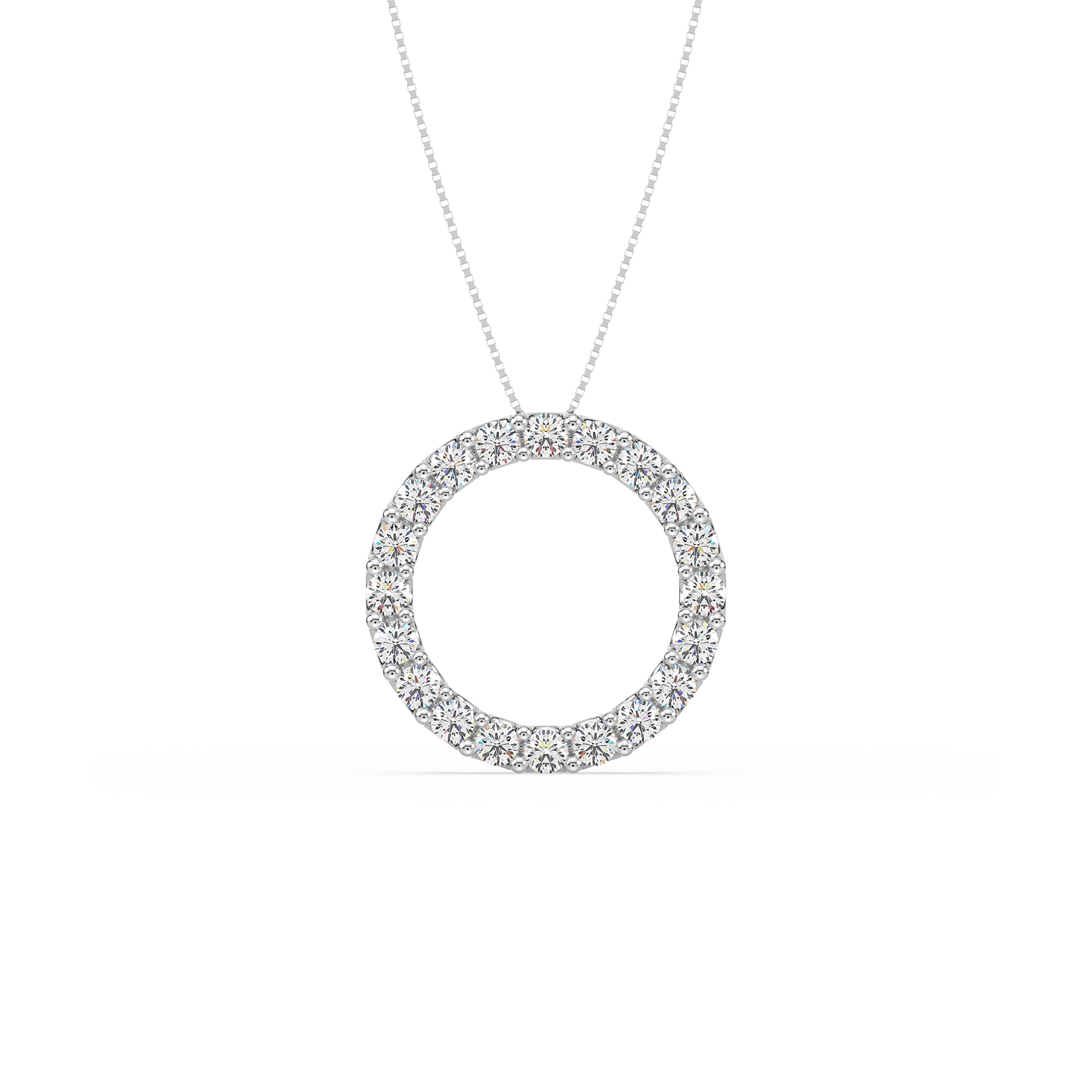 A timeless circle pendant adorned with a continuous row of brilliant diamonds. Symbolizing eternity and wholeness, this versatile piece is perfect for everyday elegance or gifting