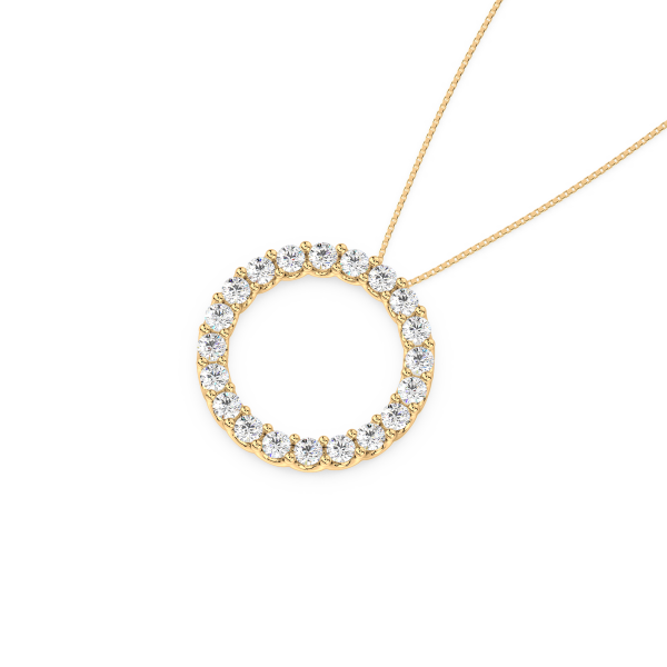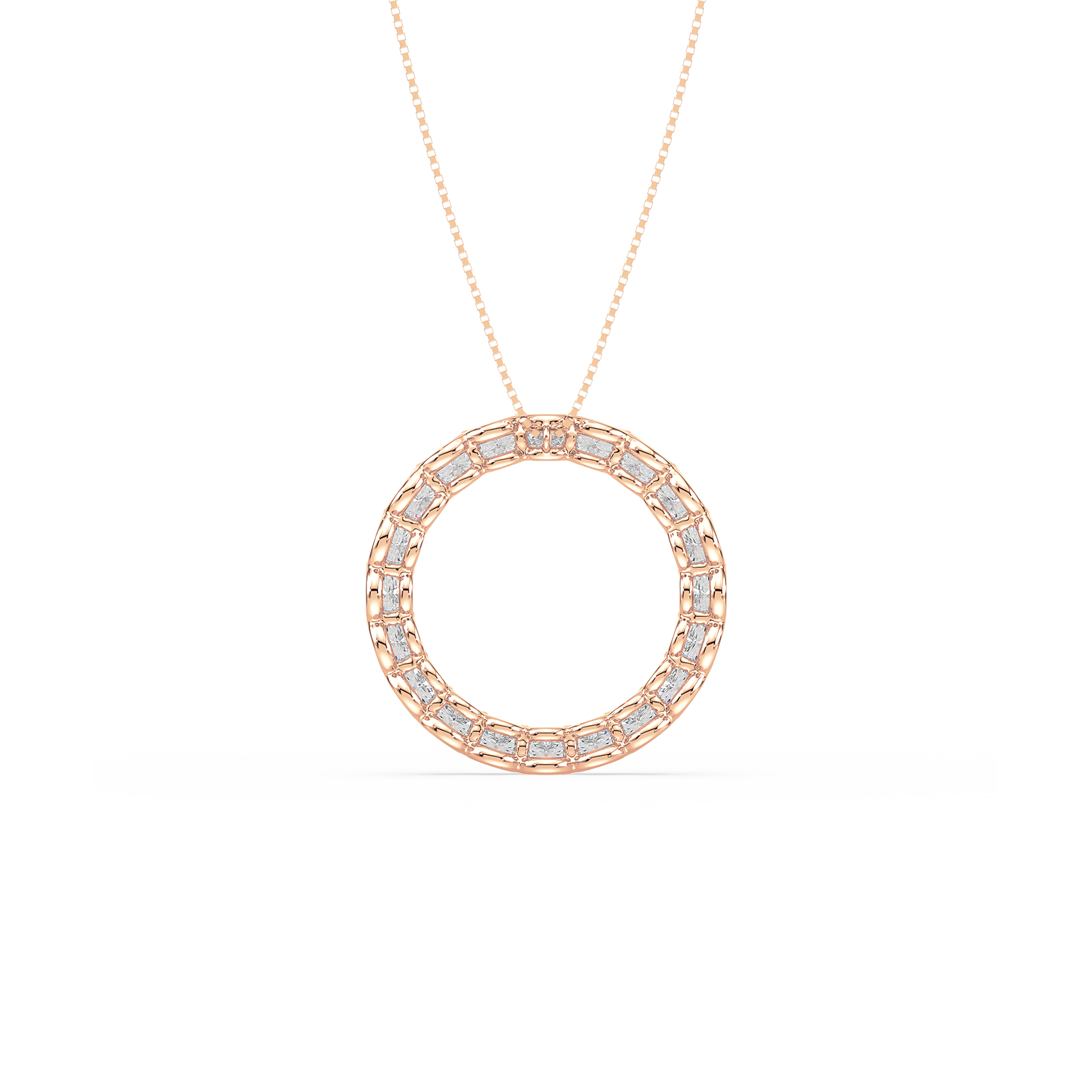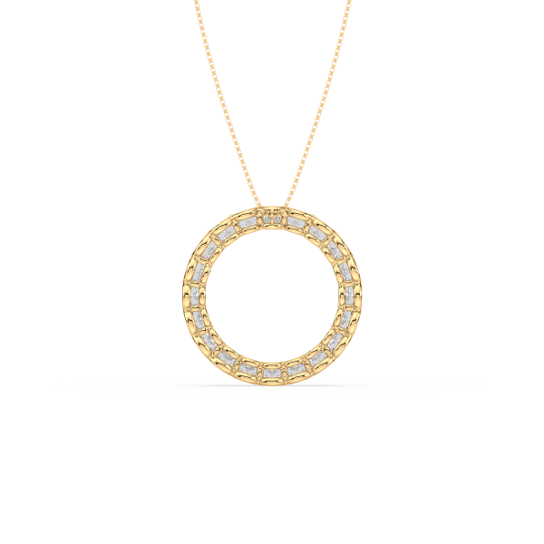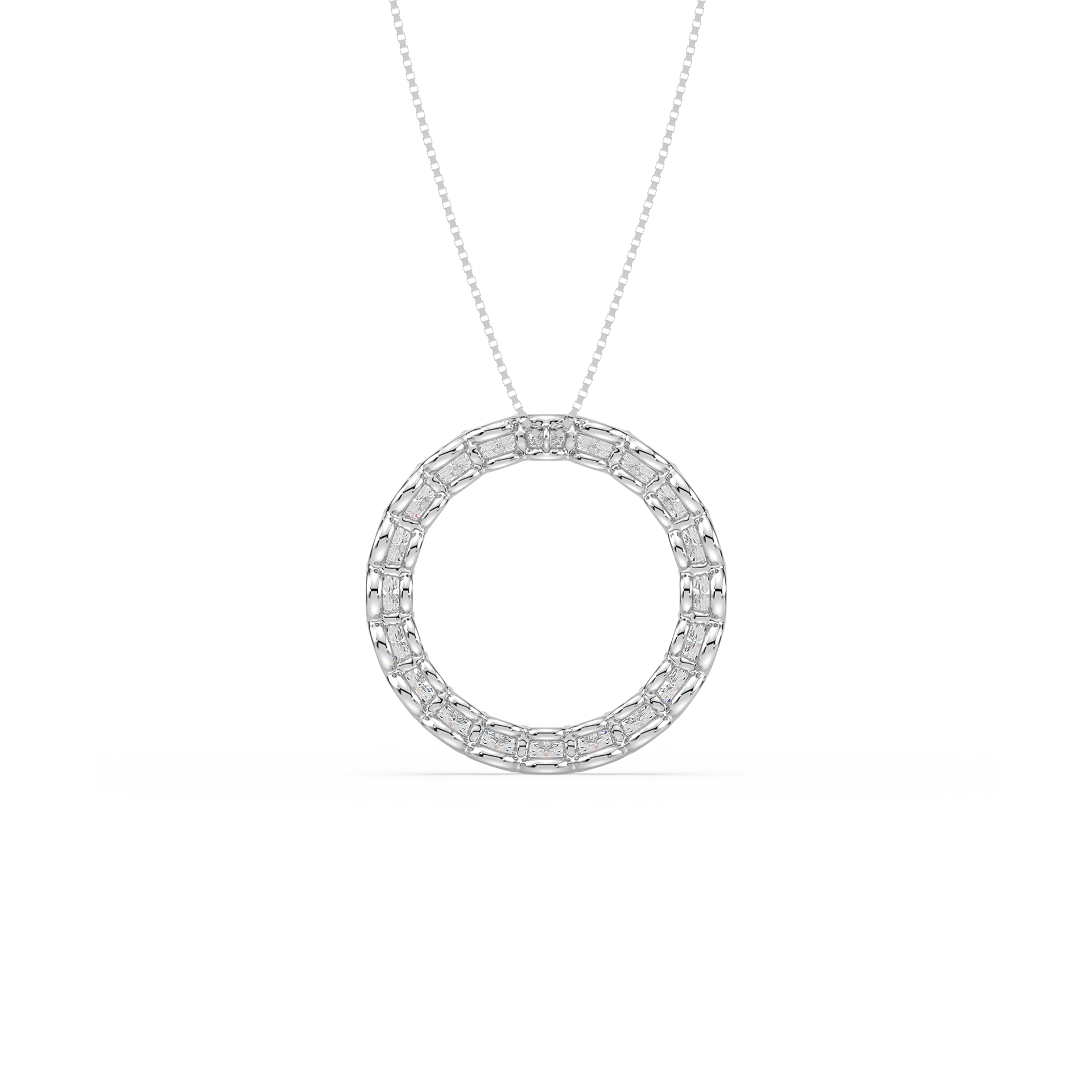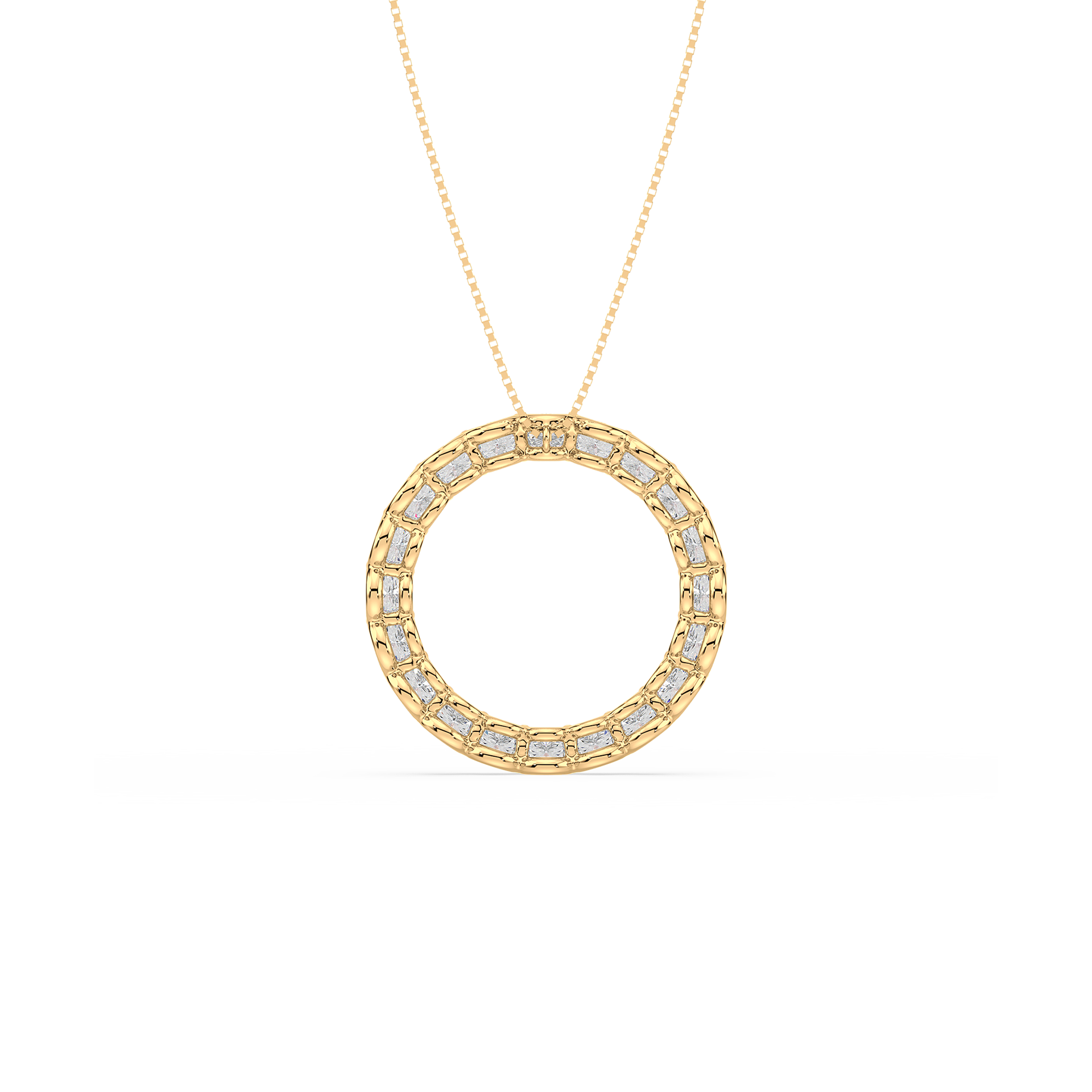 A timeless circle pendant adorned with a continuous row of brilliant diamonds. Symbolizing eternity and wholeness, this versatile piece is perfect for everyday elegance or gifting