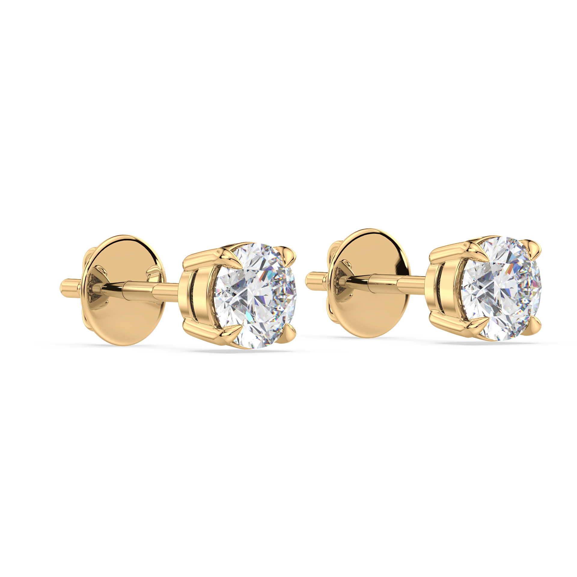 Iconic solitaire diamond stud earrings in a secure prong setting. A timeless essential that captures pure elegance and brilliance, perfect for everyday wear or special occasions