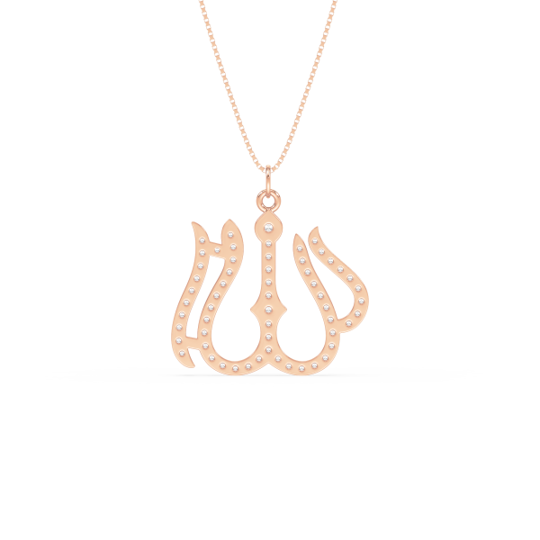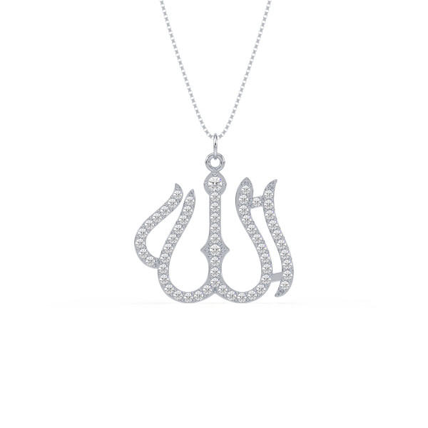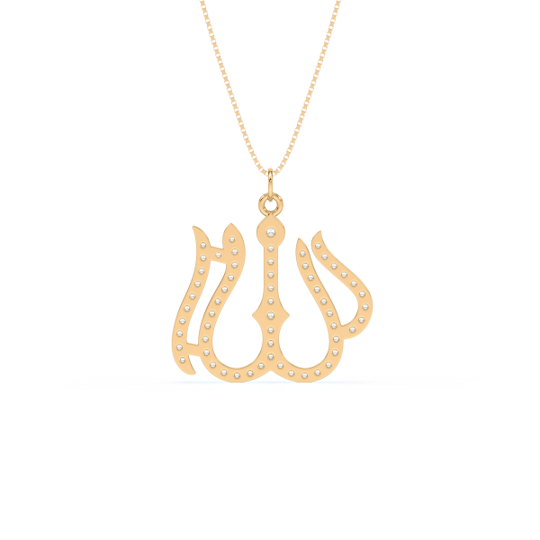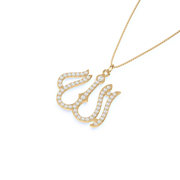 A beautifully crafted Allah pendant embellished with sparkling diamonds, symbolizing faith, devotion, and protection. A perfect blend of spirituality and luxury