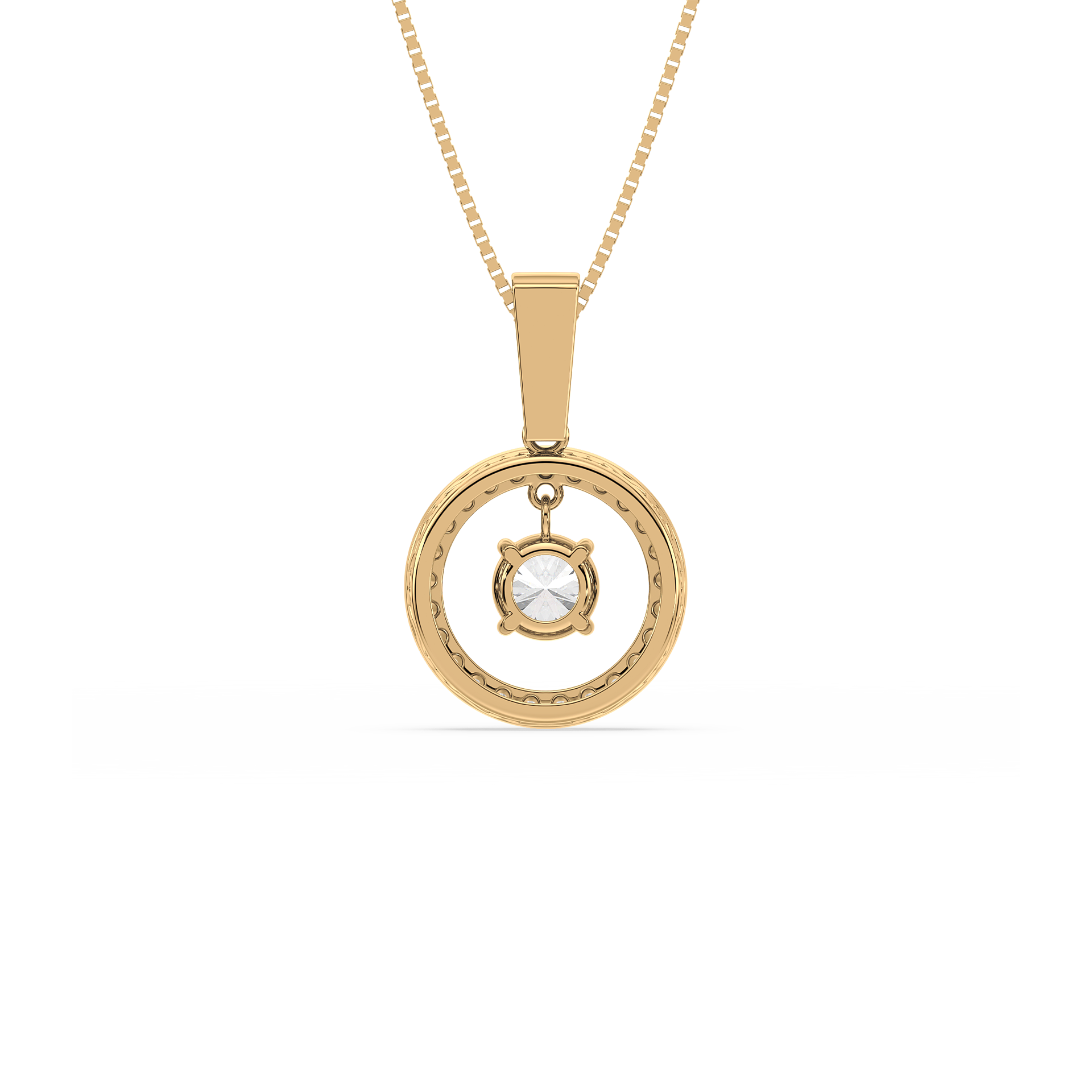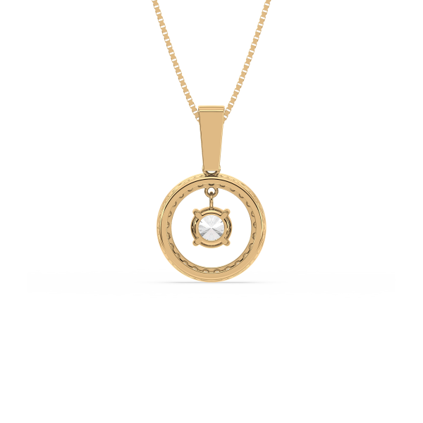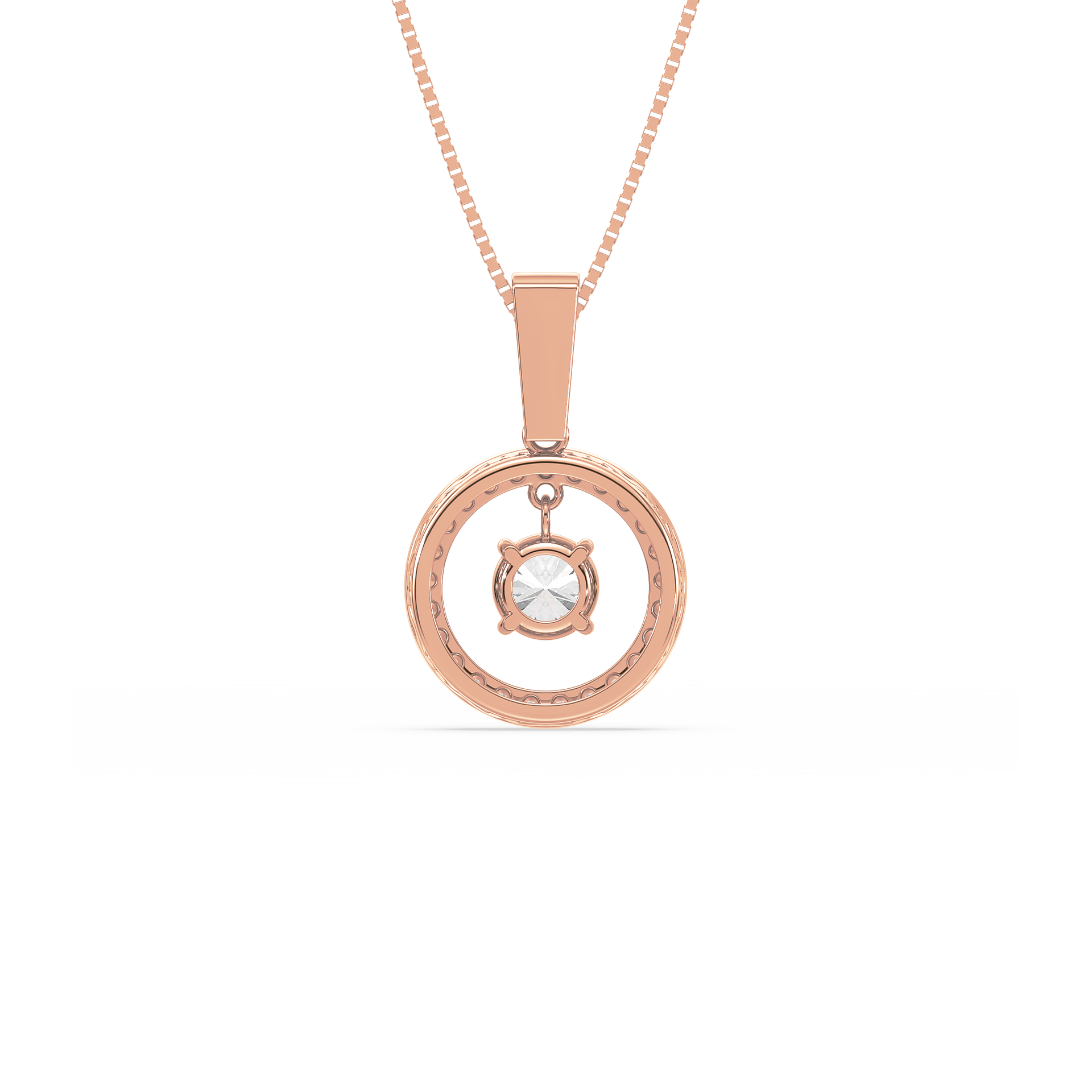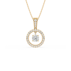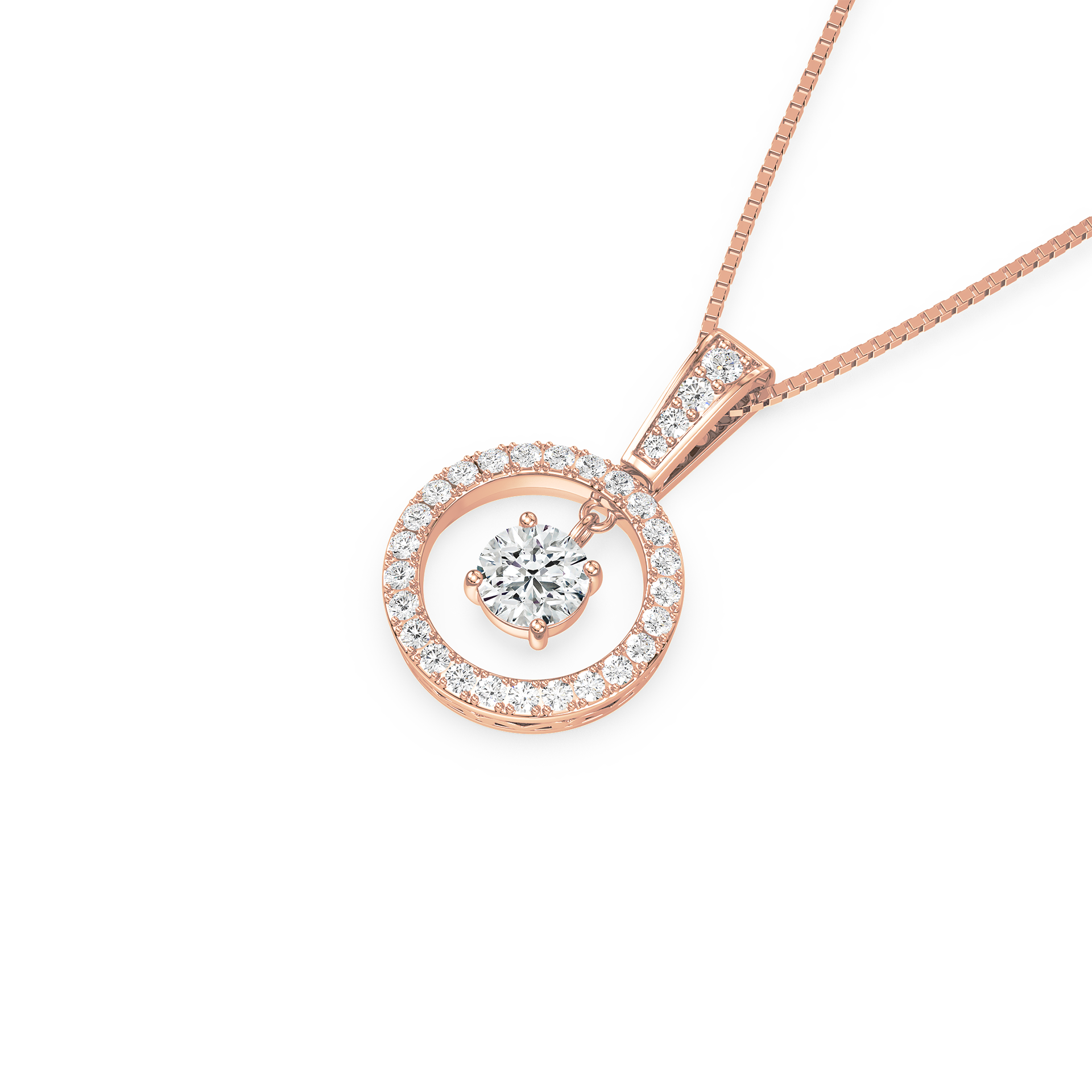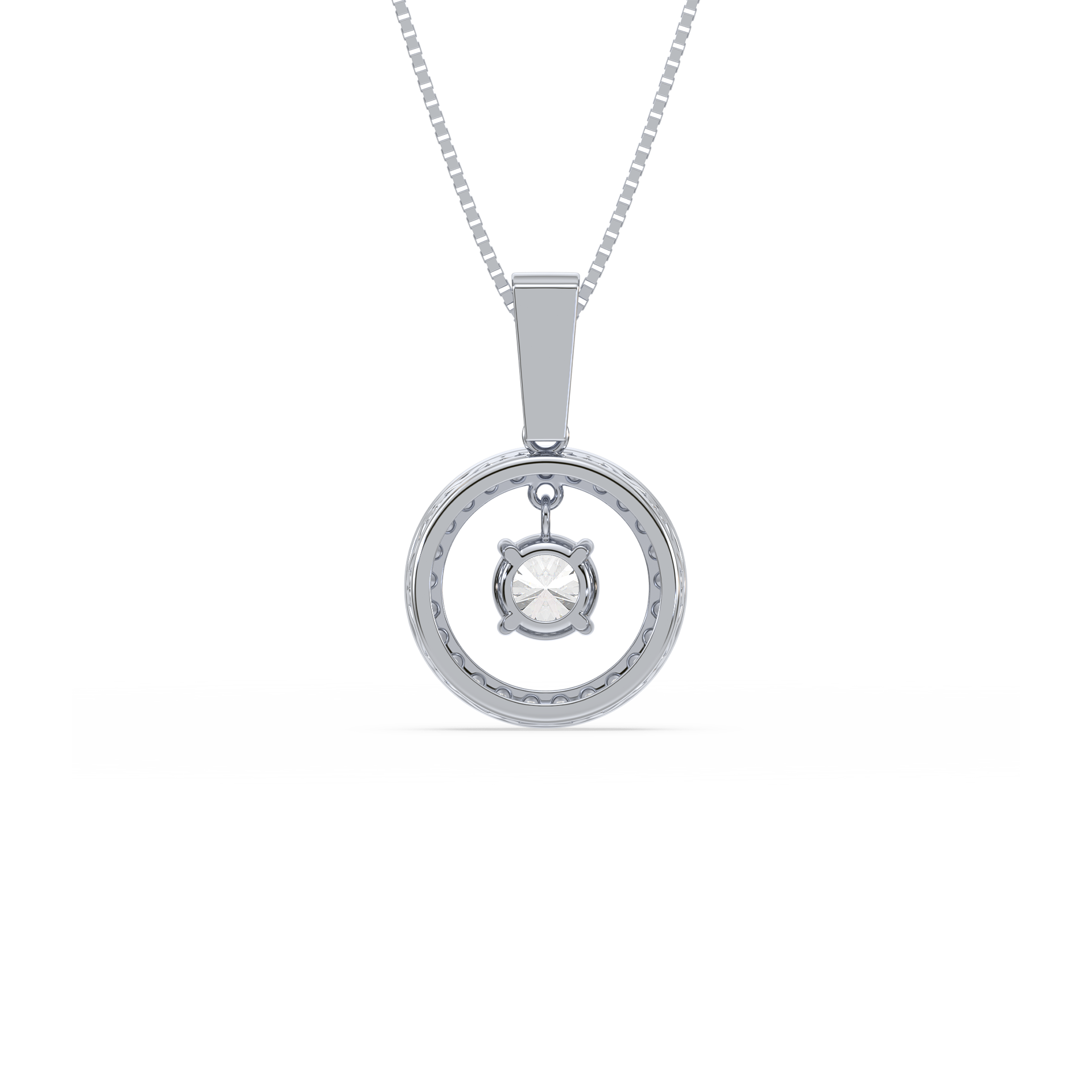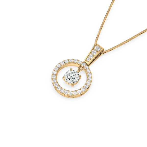 A radiant diamond circle pendant featuring a sparkling solitaire suspended at its center. Surrounded by a halo of brilliant diamonds, this design symbolizes eternity and elegance
