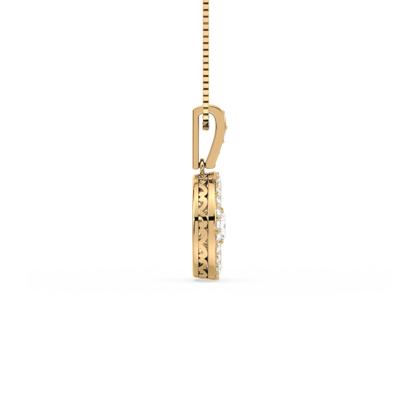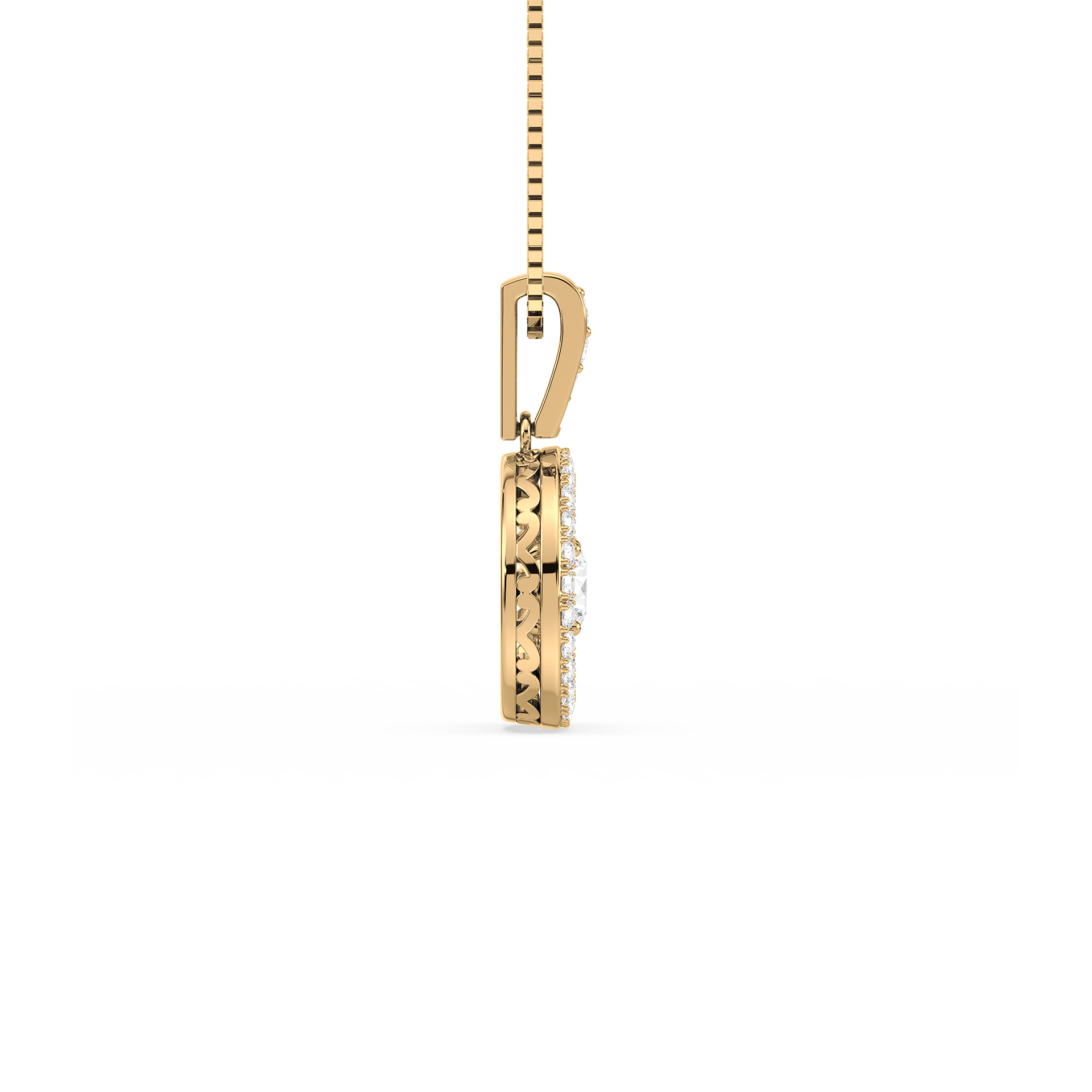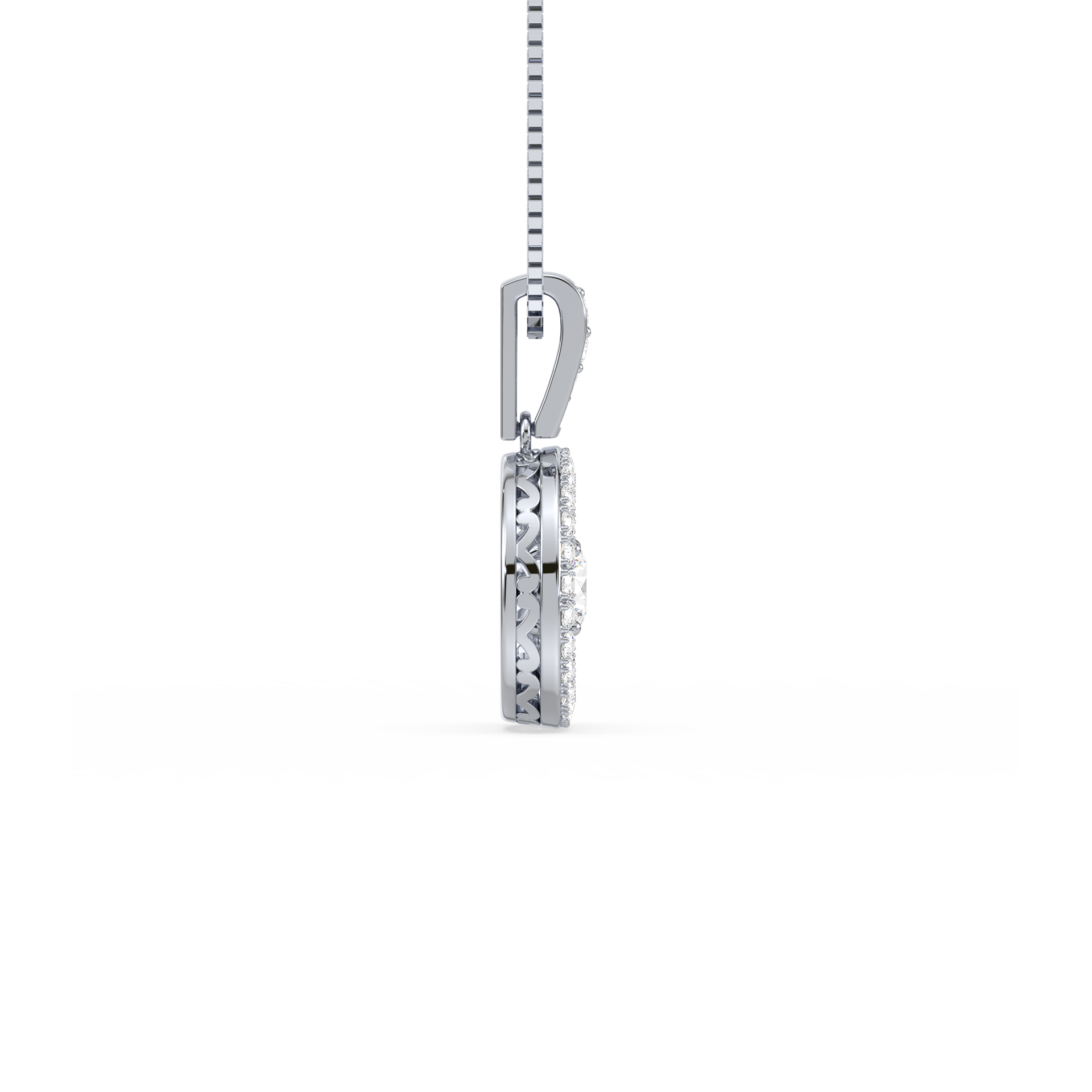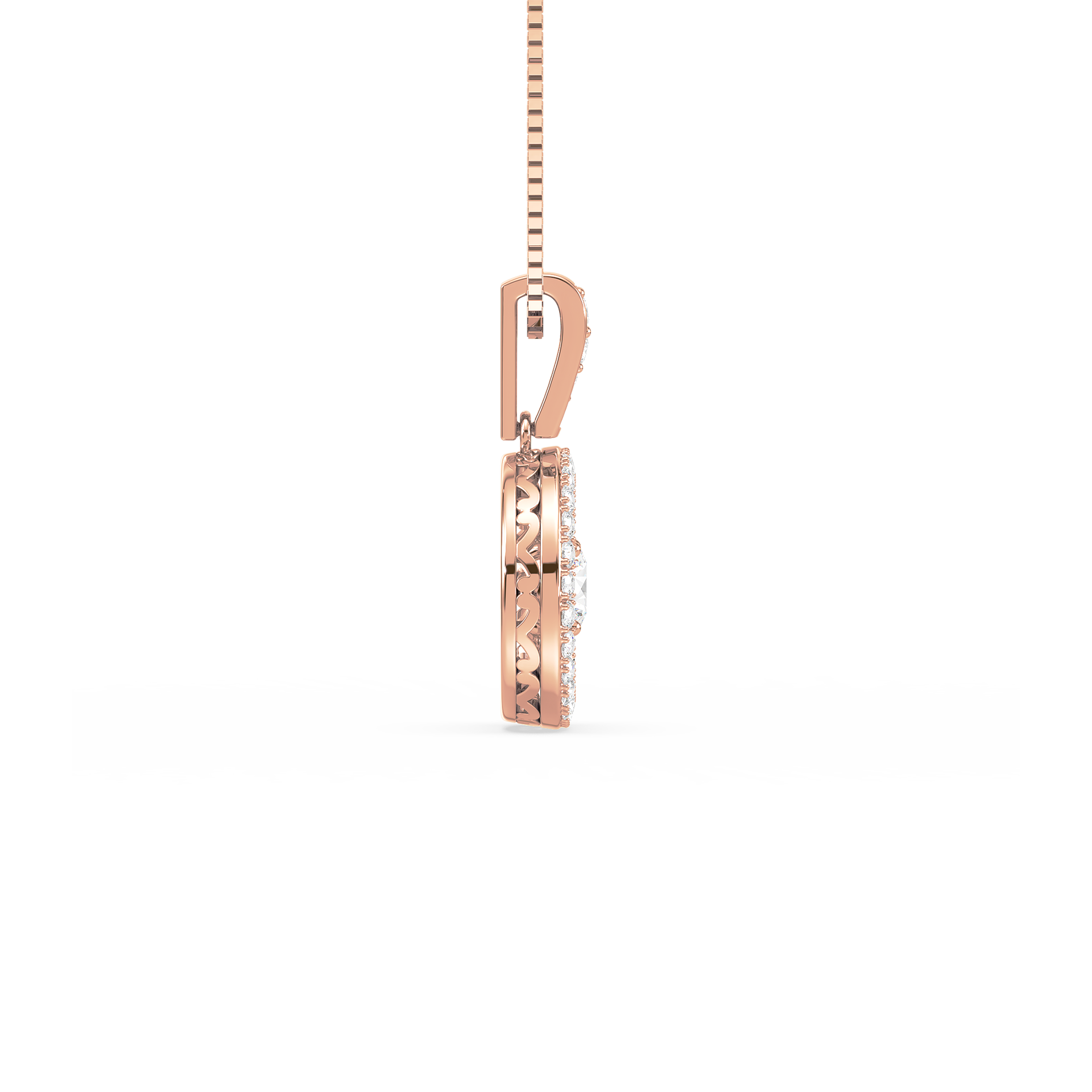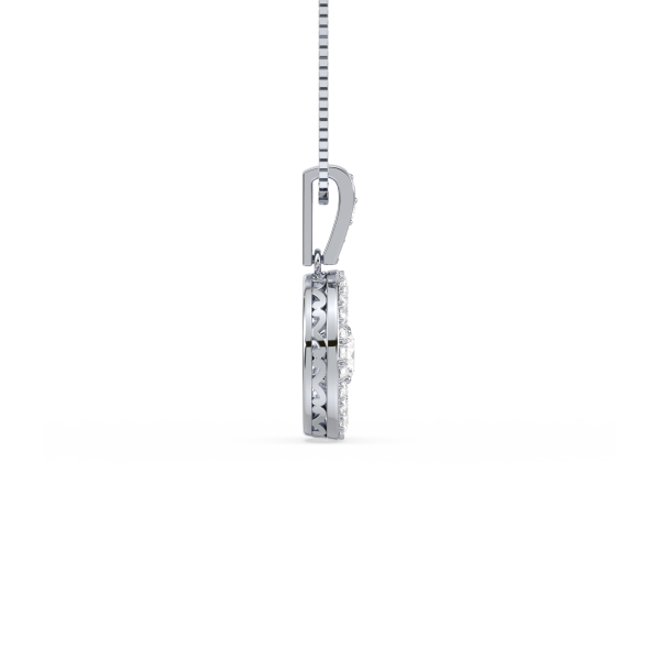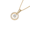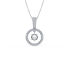 A radiant diamond circle pendant featuring a sparkling solitaire suspended at its center. Surrounded by a halo of brilliant diamonds, this design symbolizes eternity and elegance