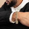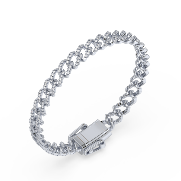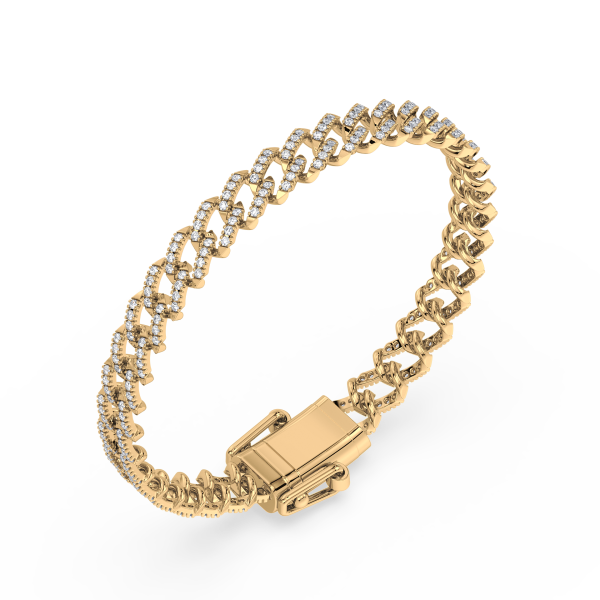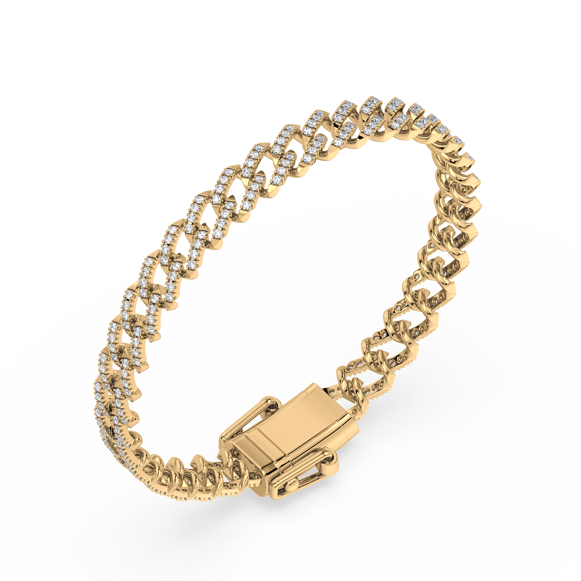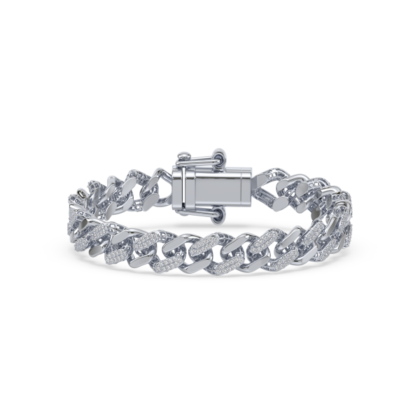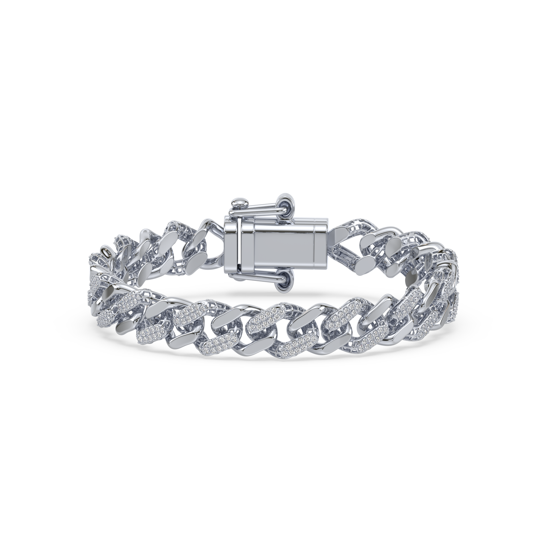 A bold Cuban link bracelet paved with shimmering diamonds, combining strength and elegance in a statement design that stands out.