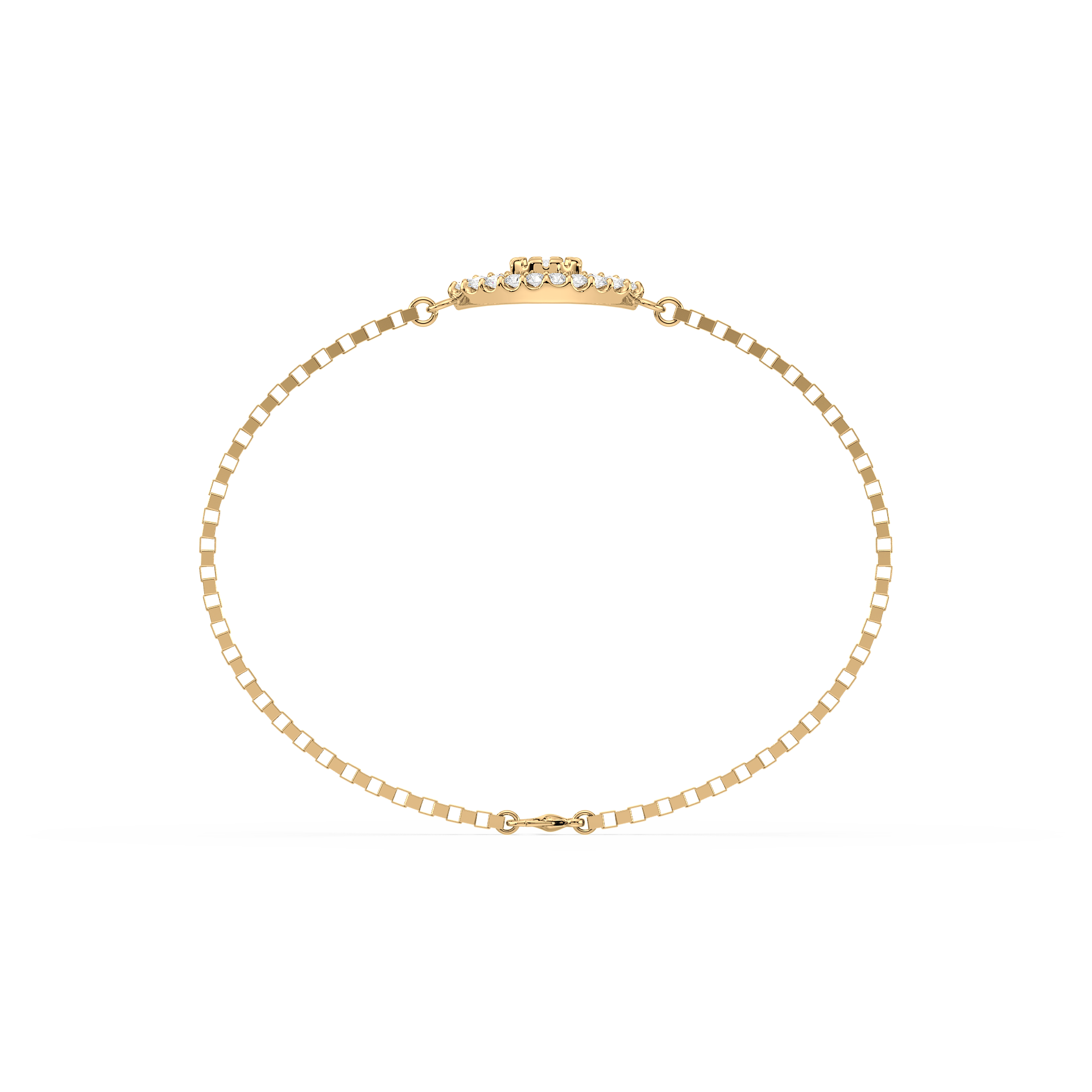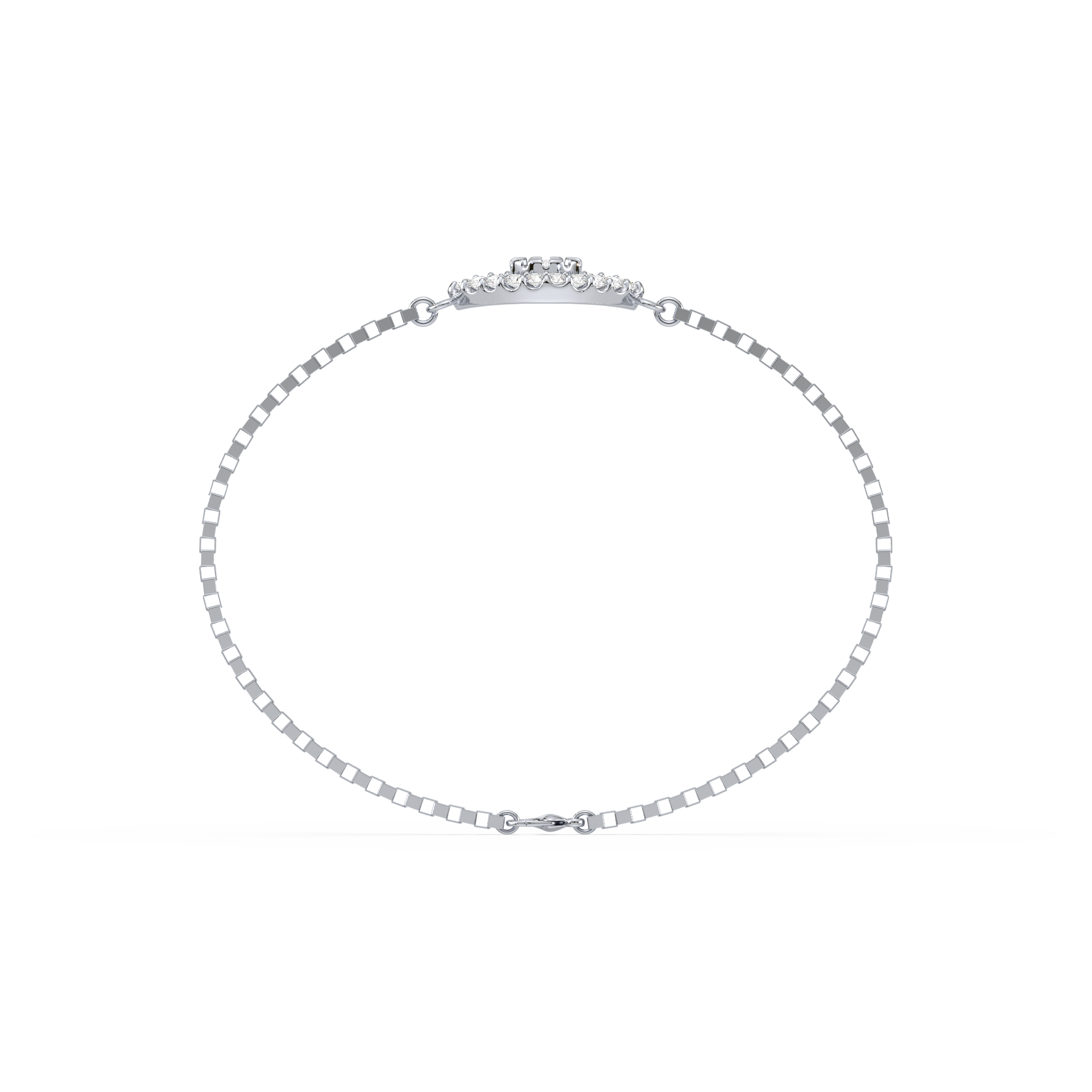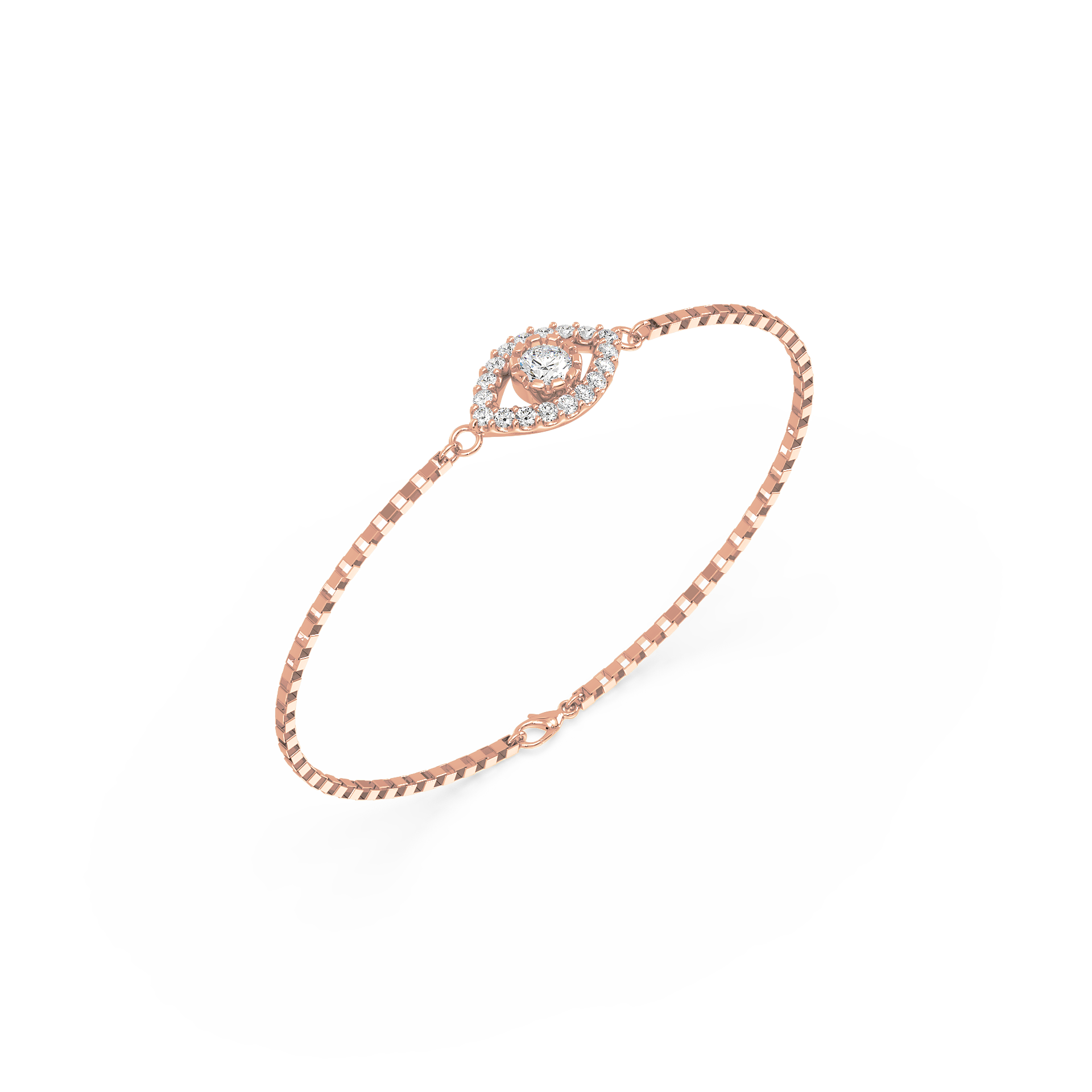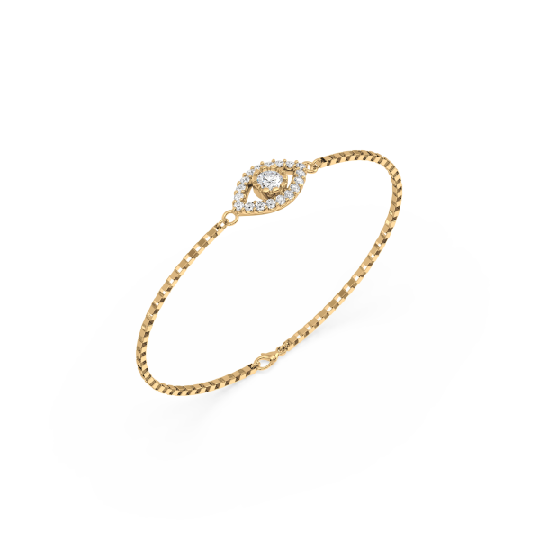 A refined bracelet featuring a dazzling diamond evil-eye motif, symbolizing protection and positivity. Its sleek design combines elegance with meaningful charm, making it both fashionable and spiritual.