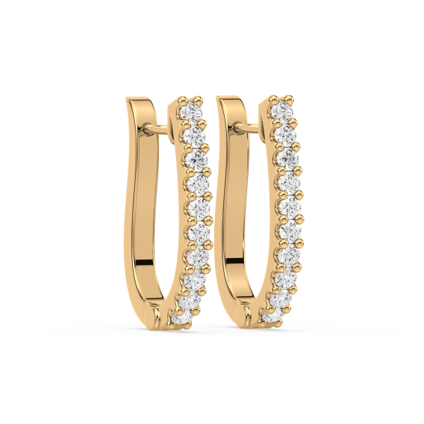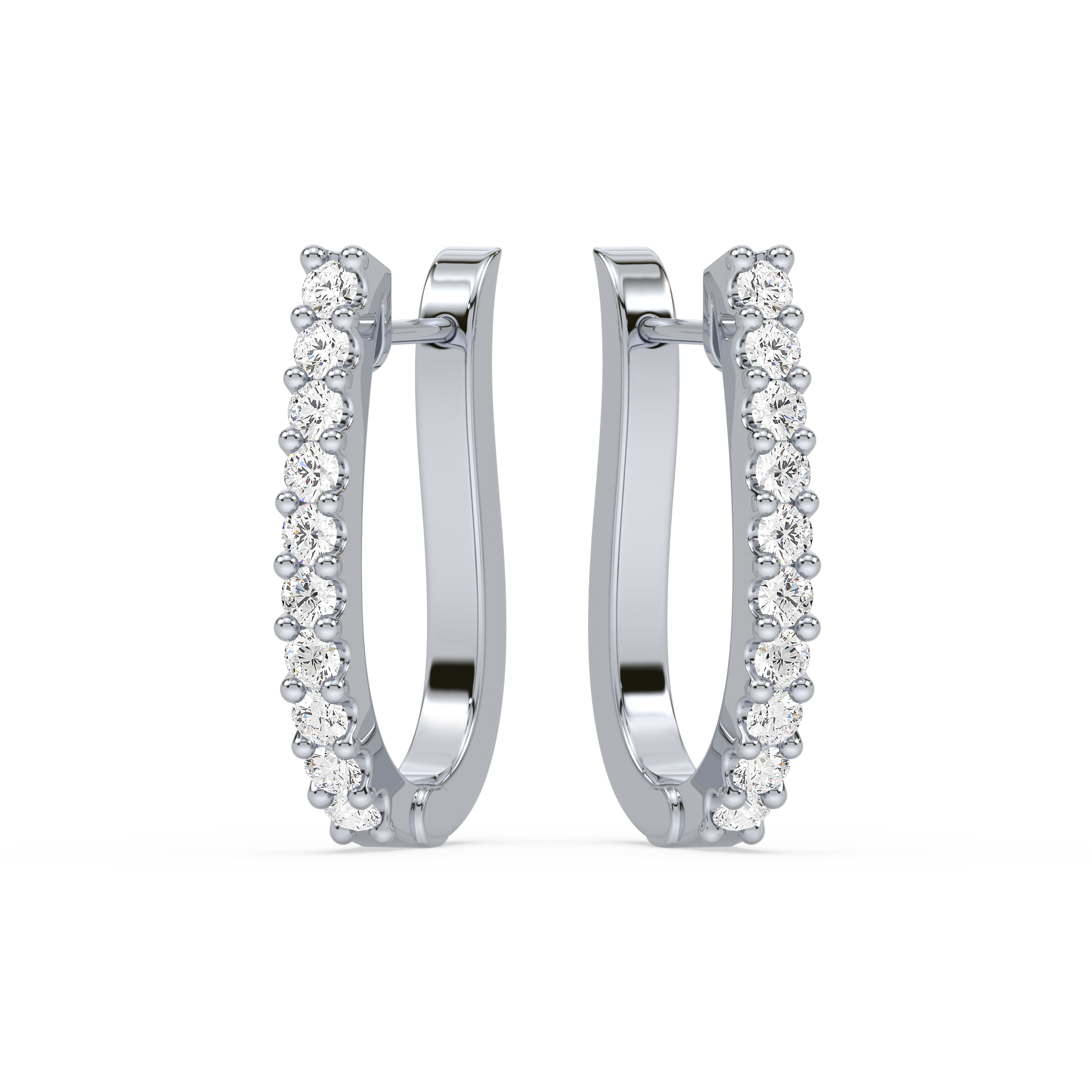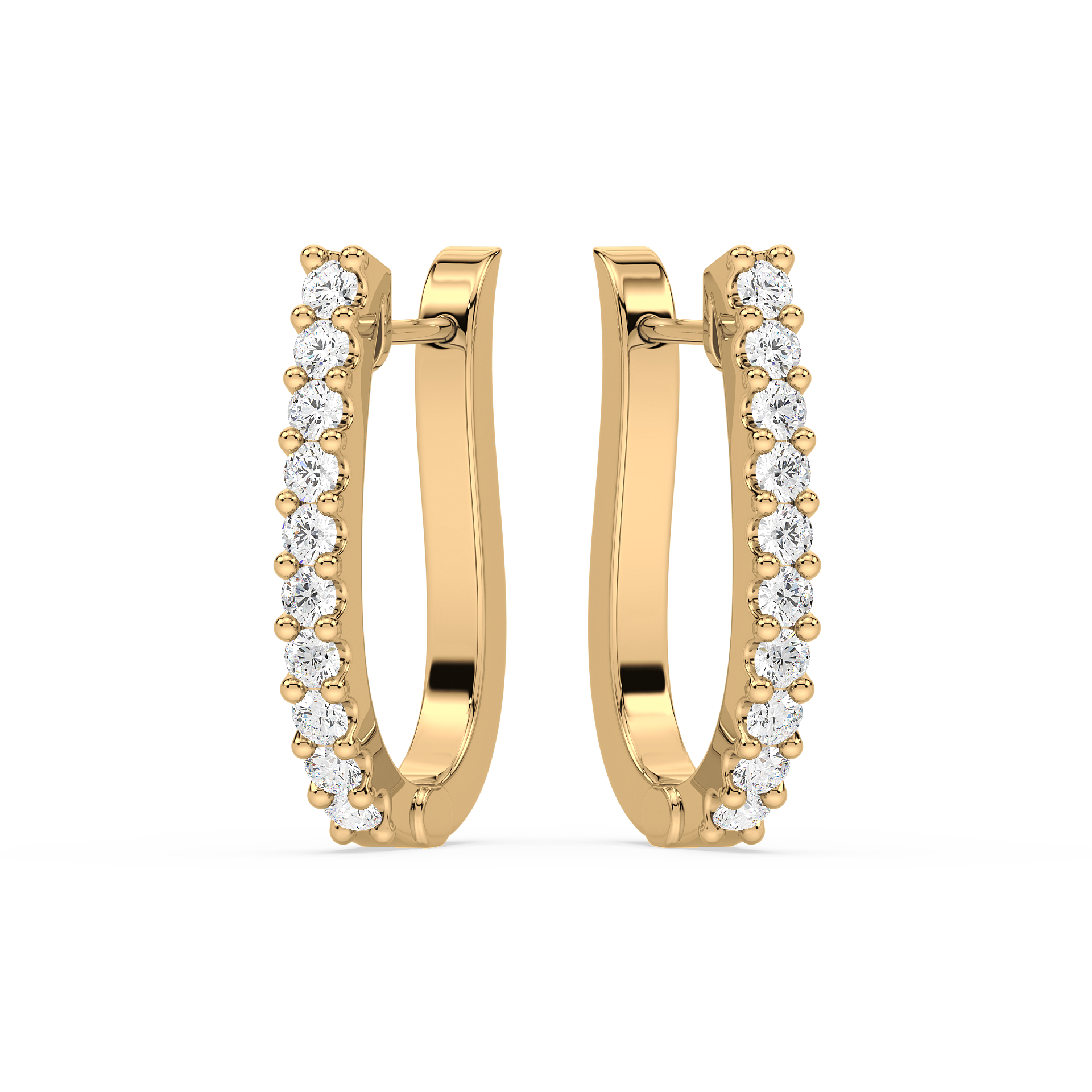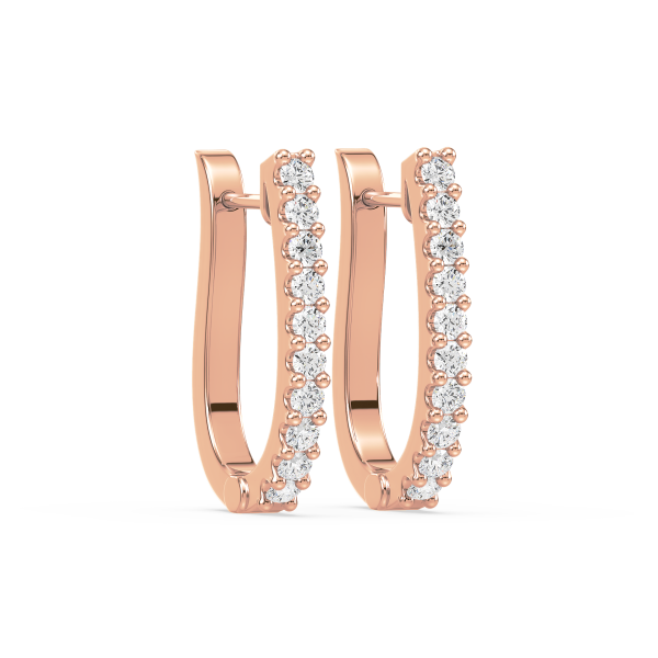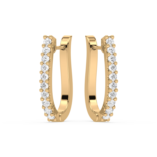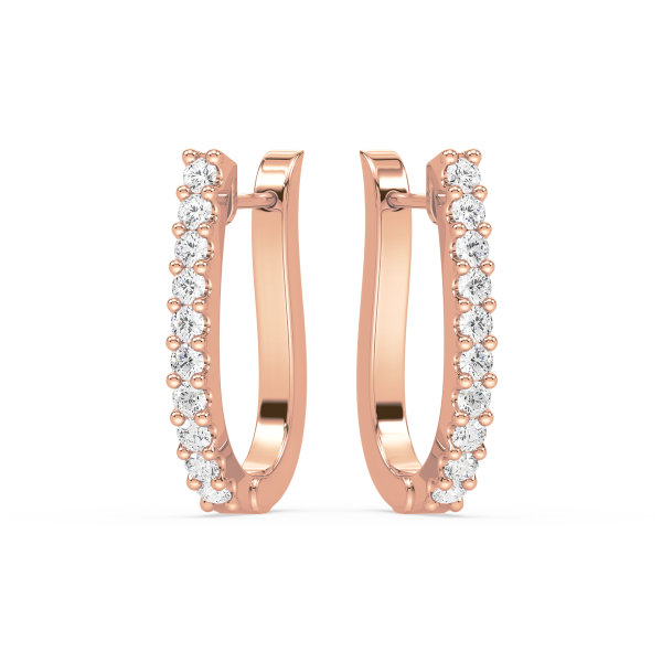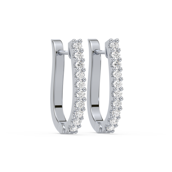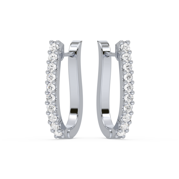 Contemporary half-hoop earrings lined with brilliant round diamonds in secure prong settings. A versatile design that blends everyday simplicity with radiant sparkle