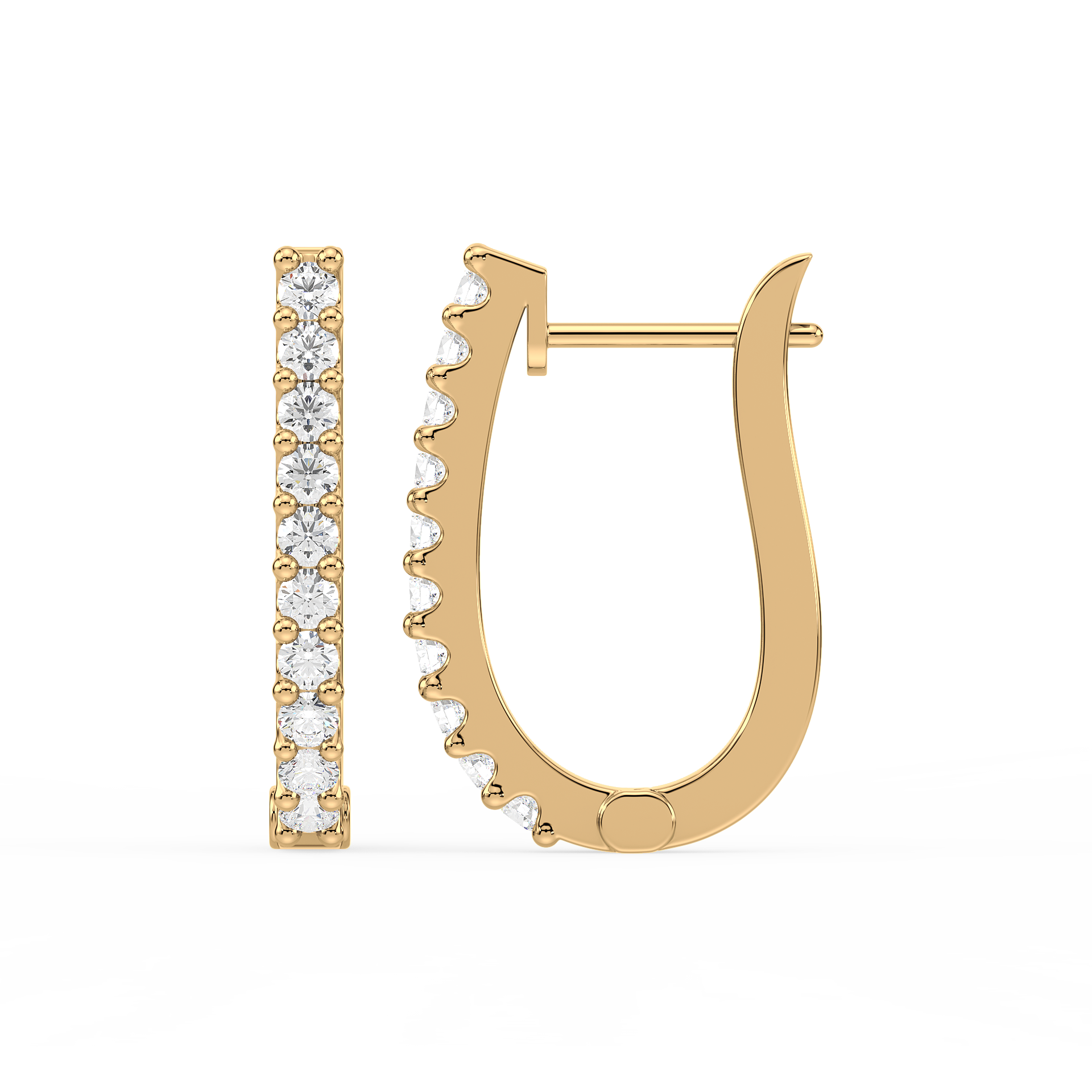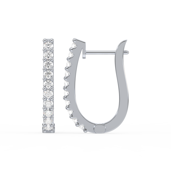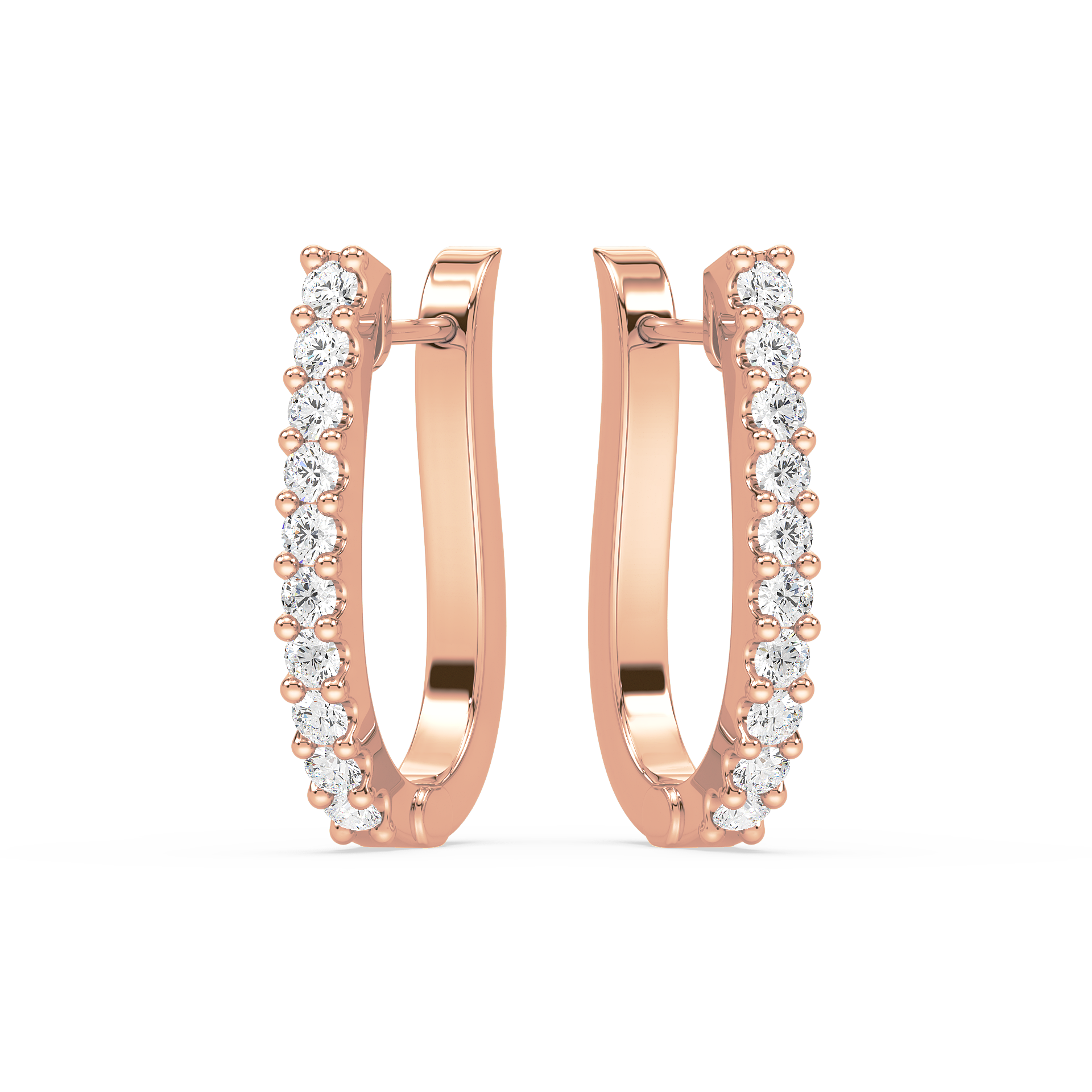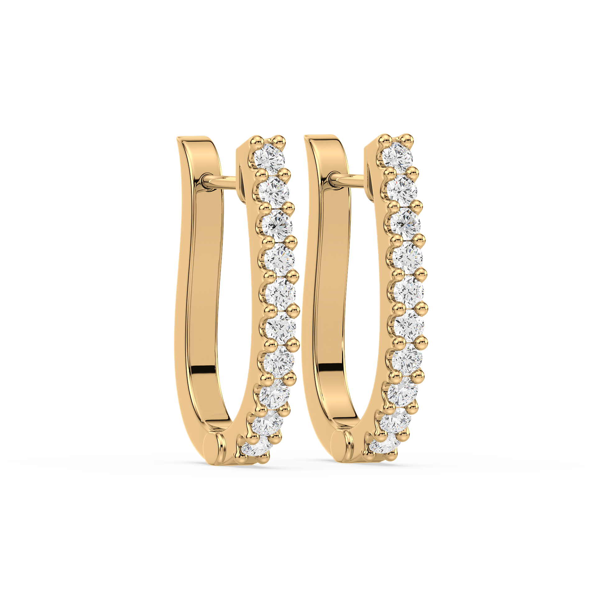 Contemporary half-hoop earrings lined with brilliant round diamonds in secure prong settings. A versatile design that blends everyday simplicity with radiant sparkle