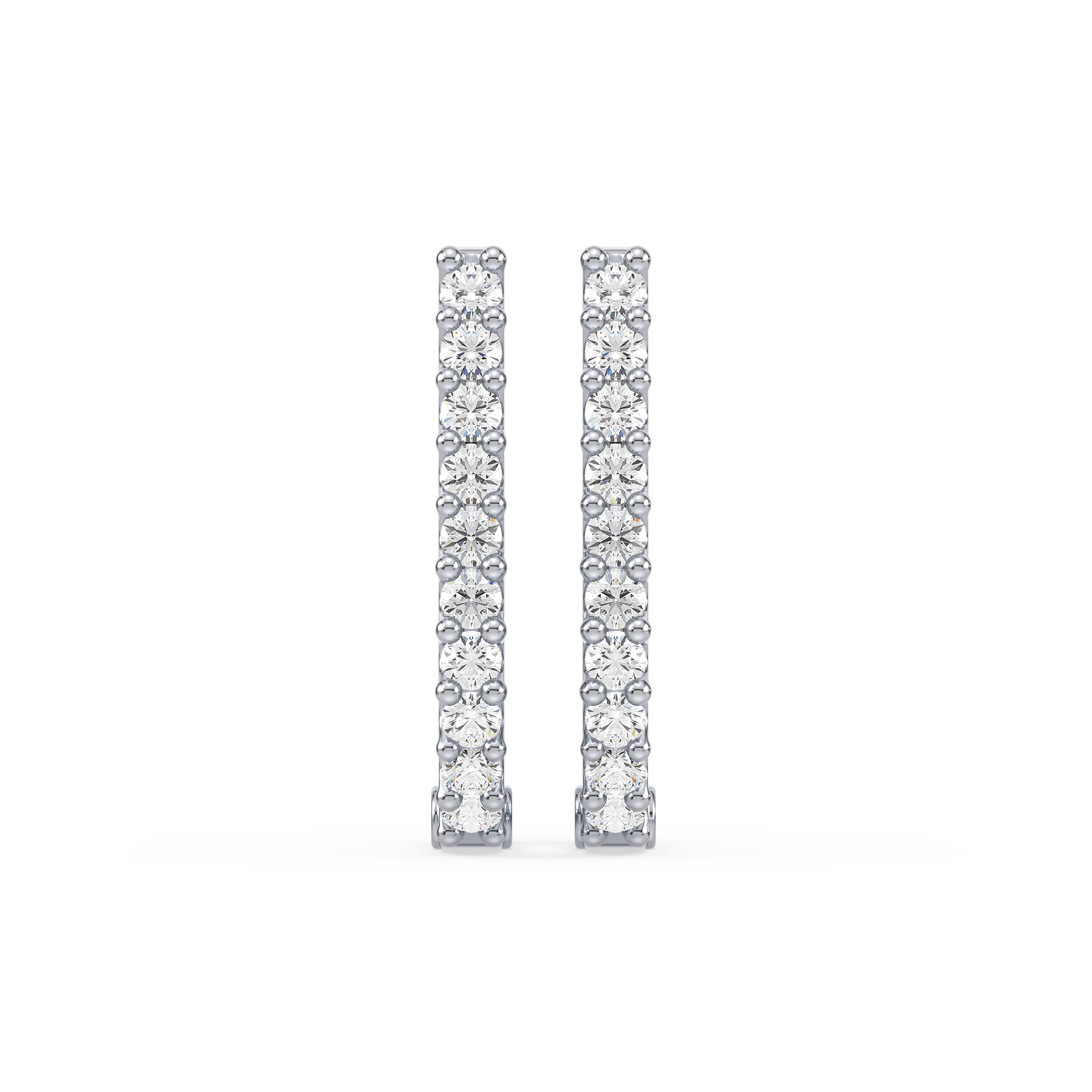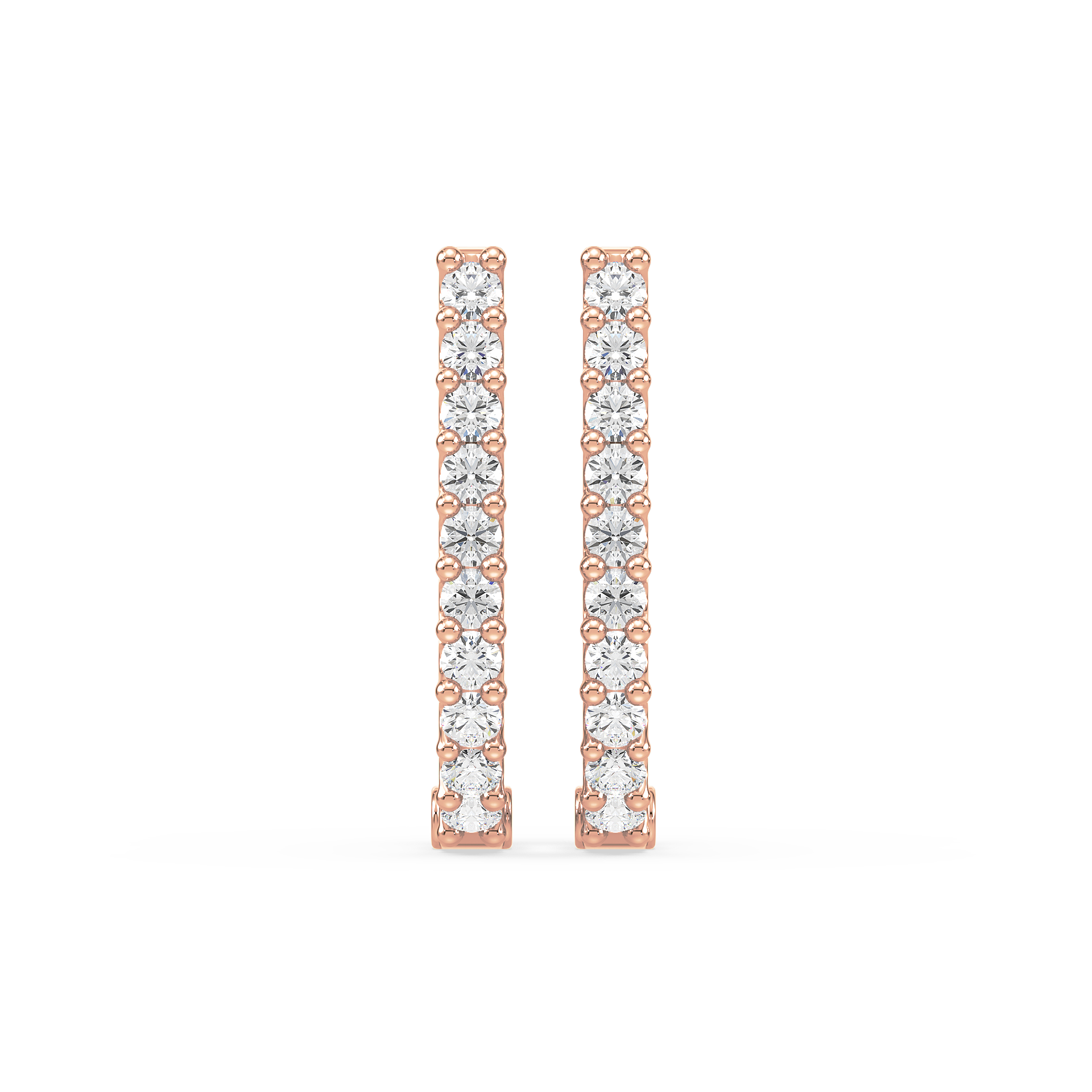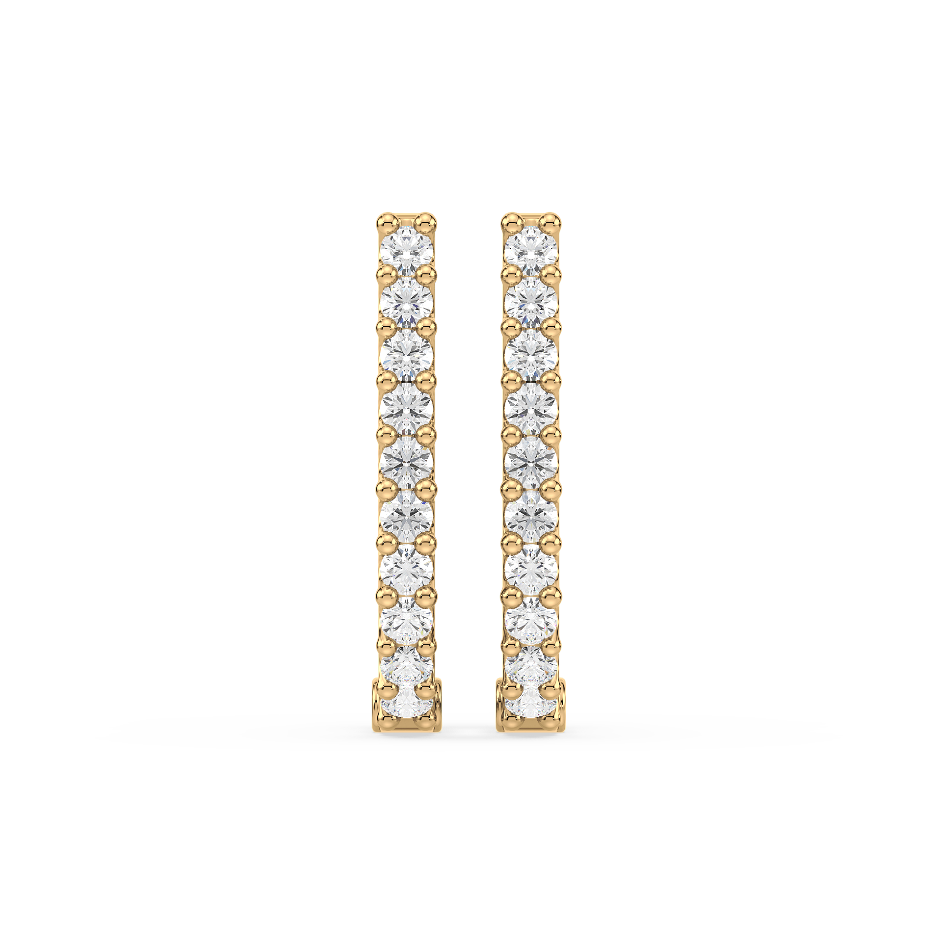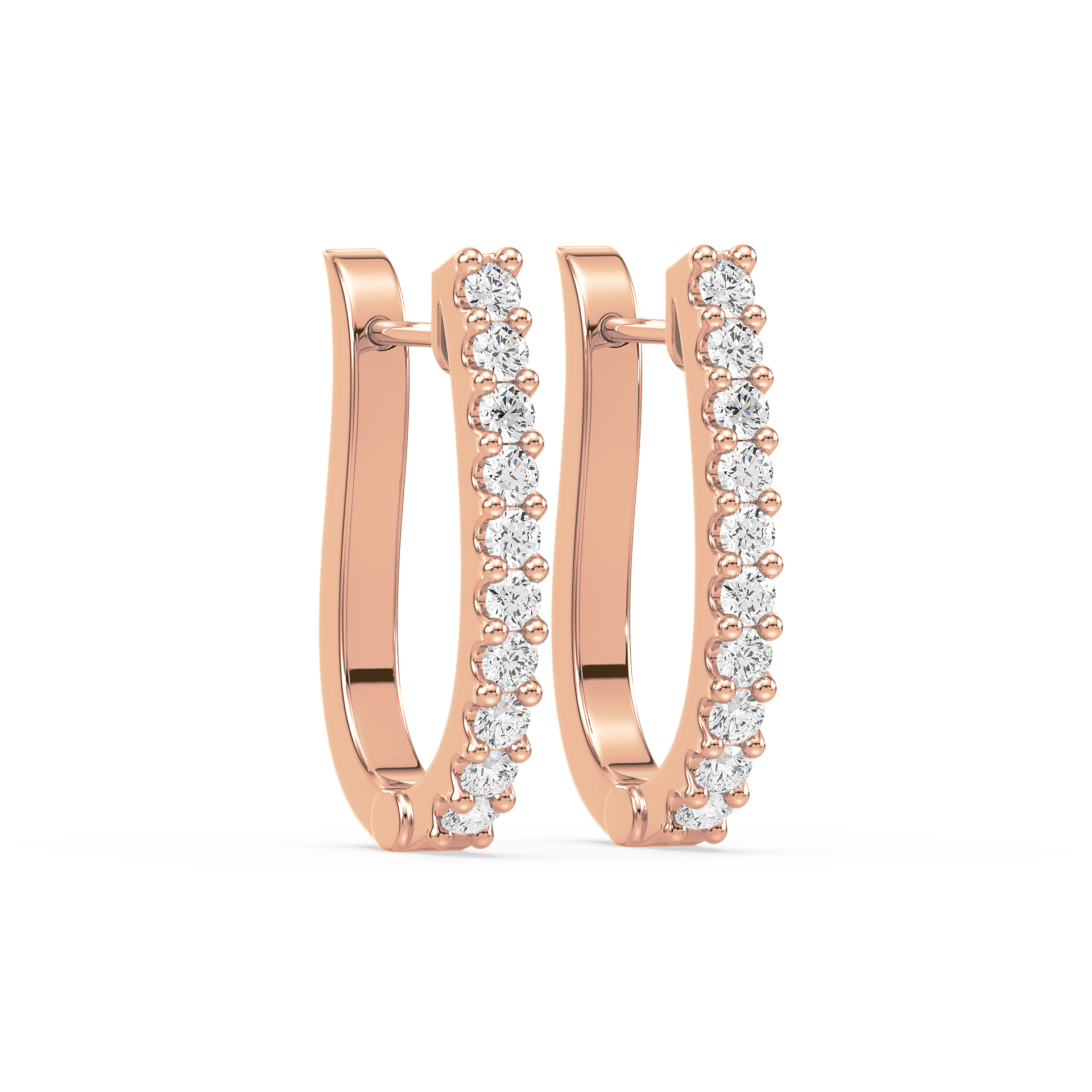 Contemporary half-hoop earrings lined with brilliant round diamonds in secure prong settings. A versatile design that blends everyday simplicity with radiant sparkle