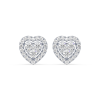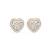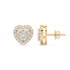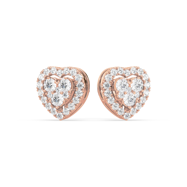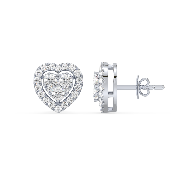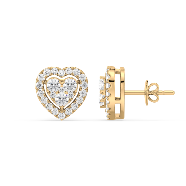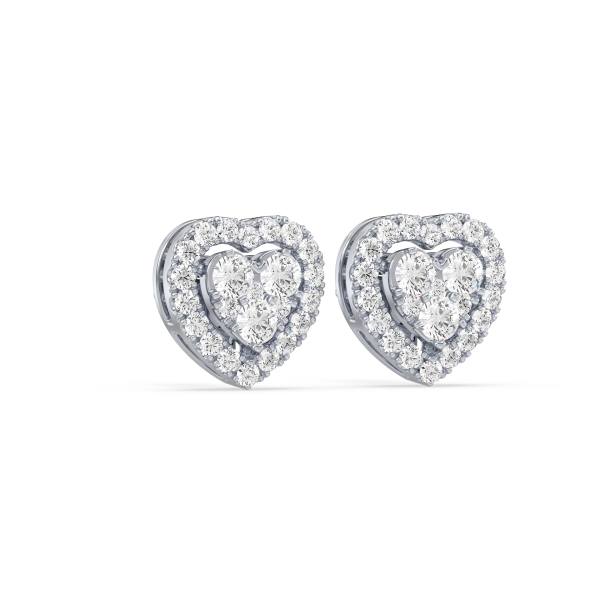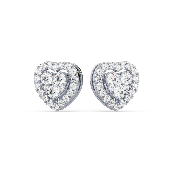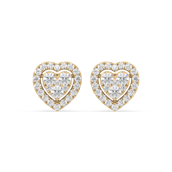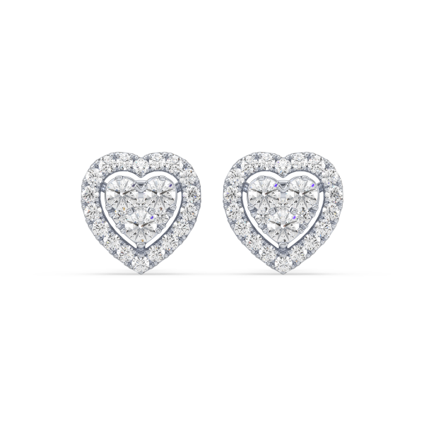 Romantic heart-shaped stud earrings adorned with a cluster of sparkling diamonds, framed by a dazzling halo. A timeless symbol of love, perfect for gifting or everyday elegance.
