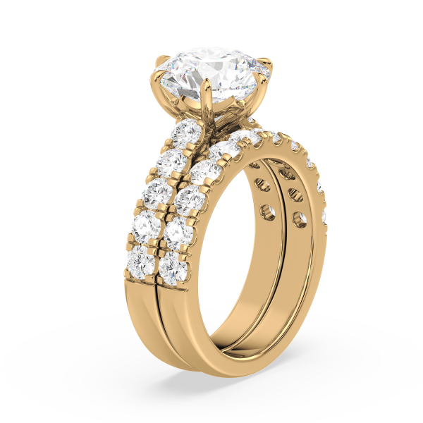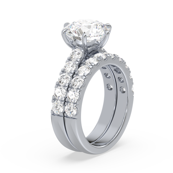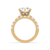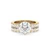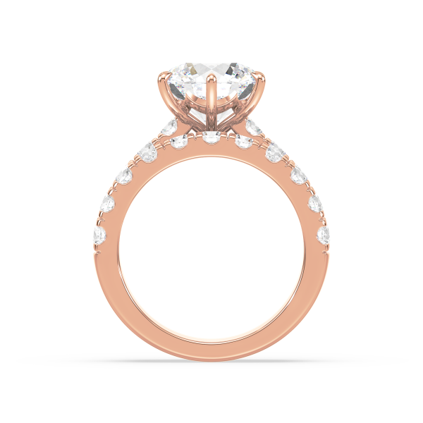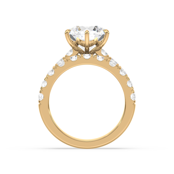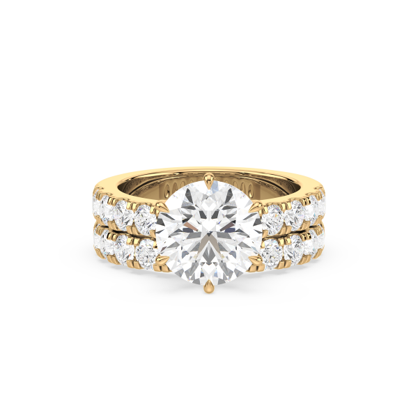 A dazzling round lab-grown diamond takes center stage in this engagement ring, set atop a wide band lined with two rows of prong-set diamonds. The double-row design maximizes sparkle and presence, making it a breathtaking symbol of love.