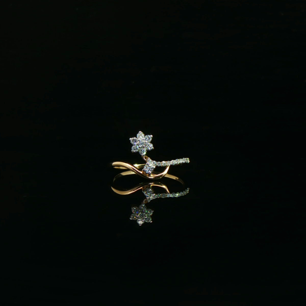 A refined diamond ring showcasing a delicate floral motif paired with a flowing, sculpted gold band. Designed to reflect effortless luxury, this piece brings timeless elegance and modern artistry together in perfect harmony.