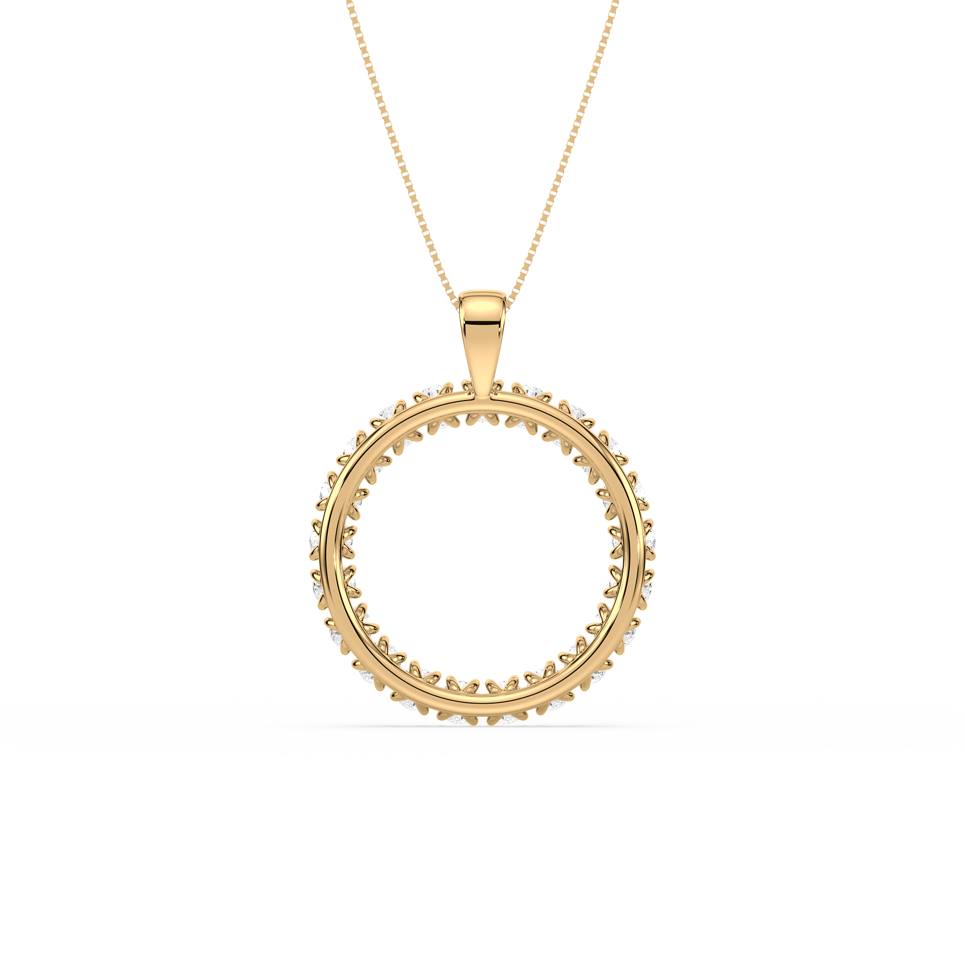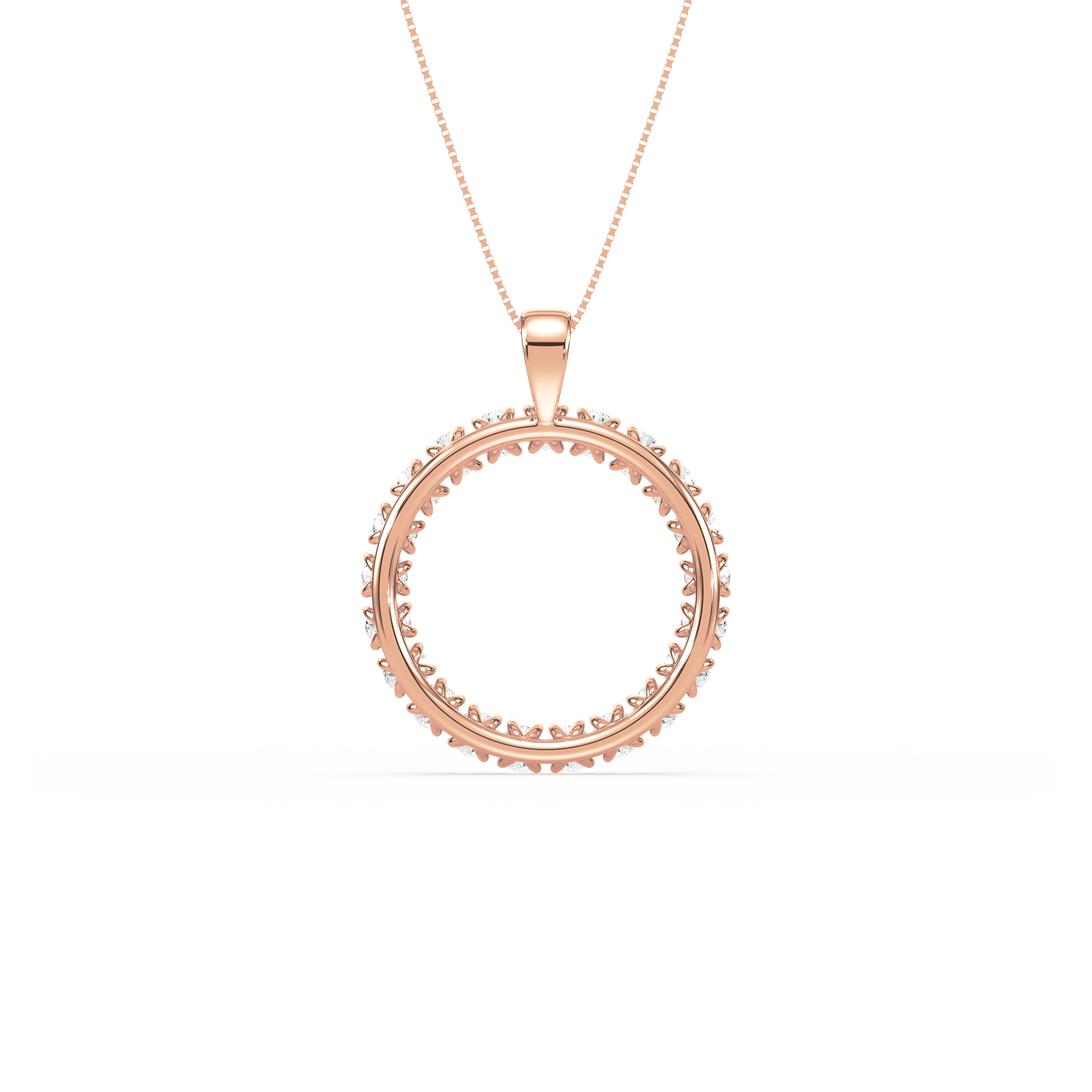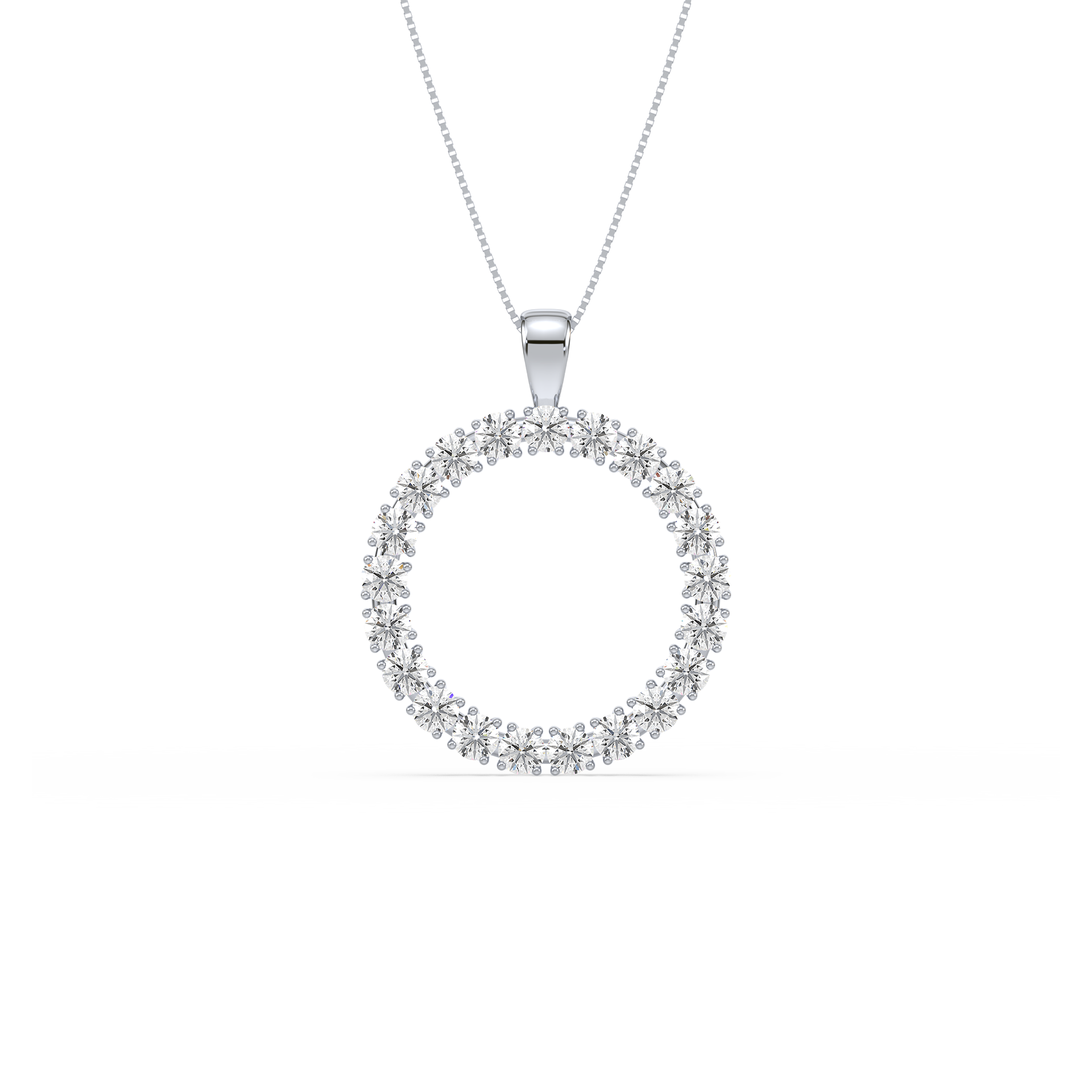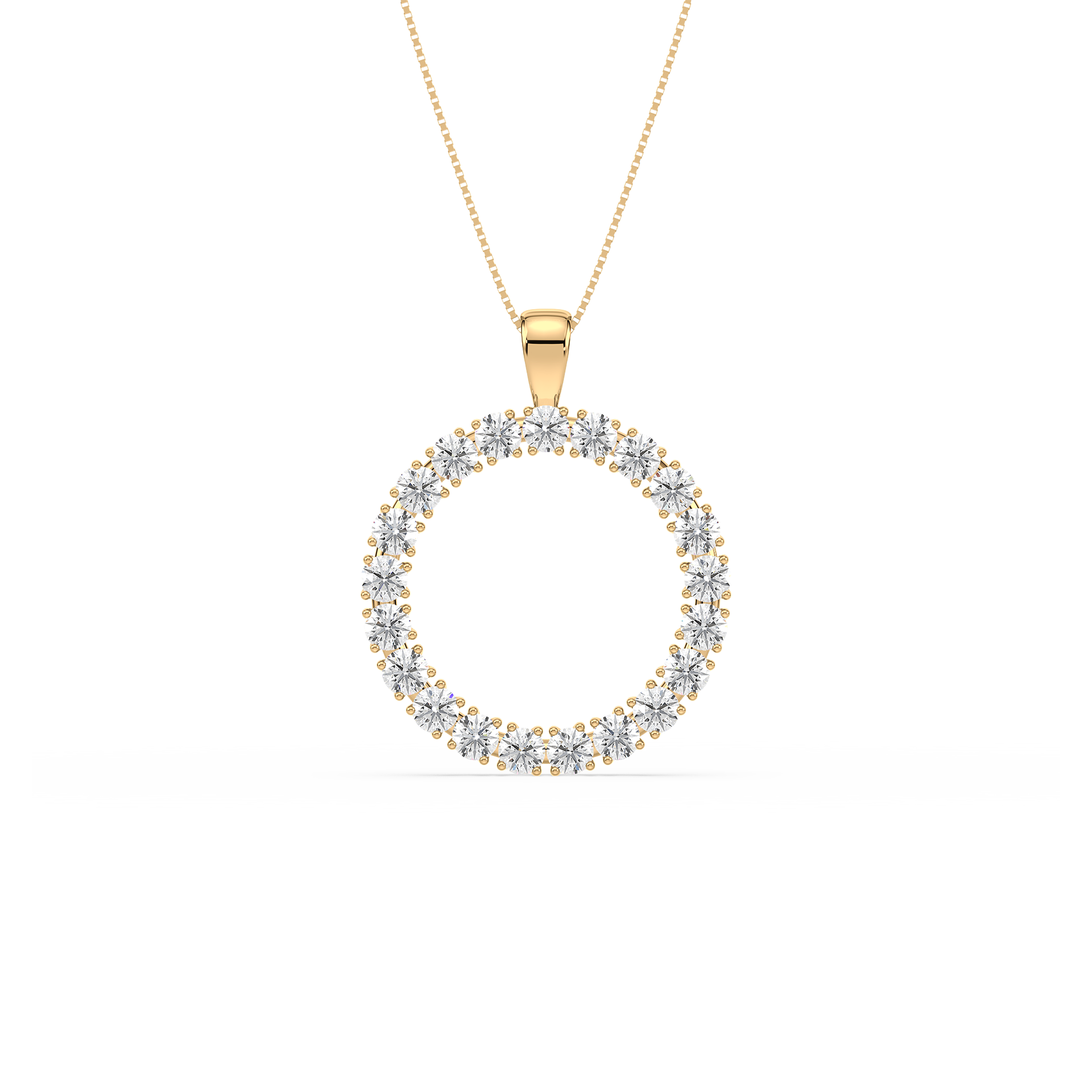 A dazzling circle pendant fully set with round brilliant diamonds, symbolizing eternity, wholeness, and timeless elegance. A versatile design perfect for both everyday sparkle and special occasions.