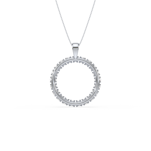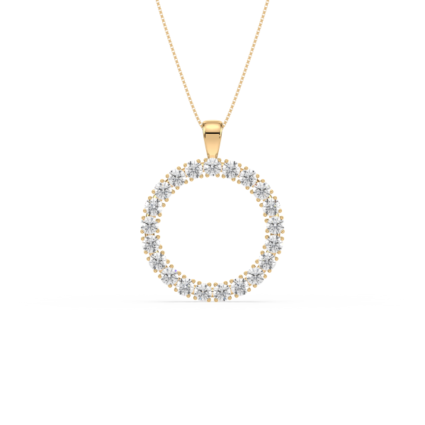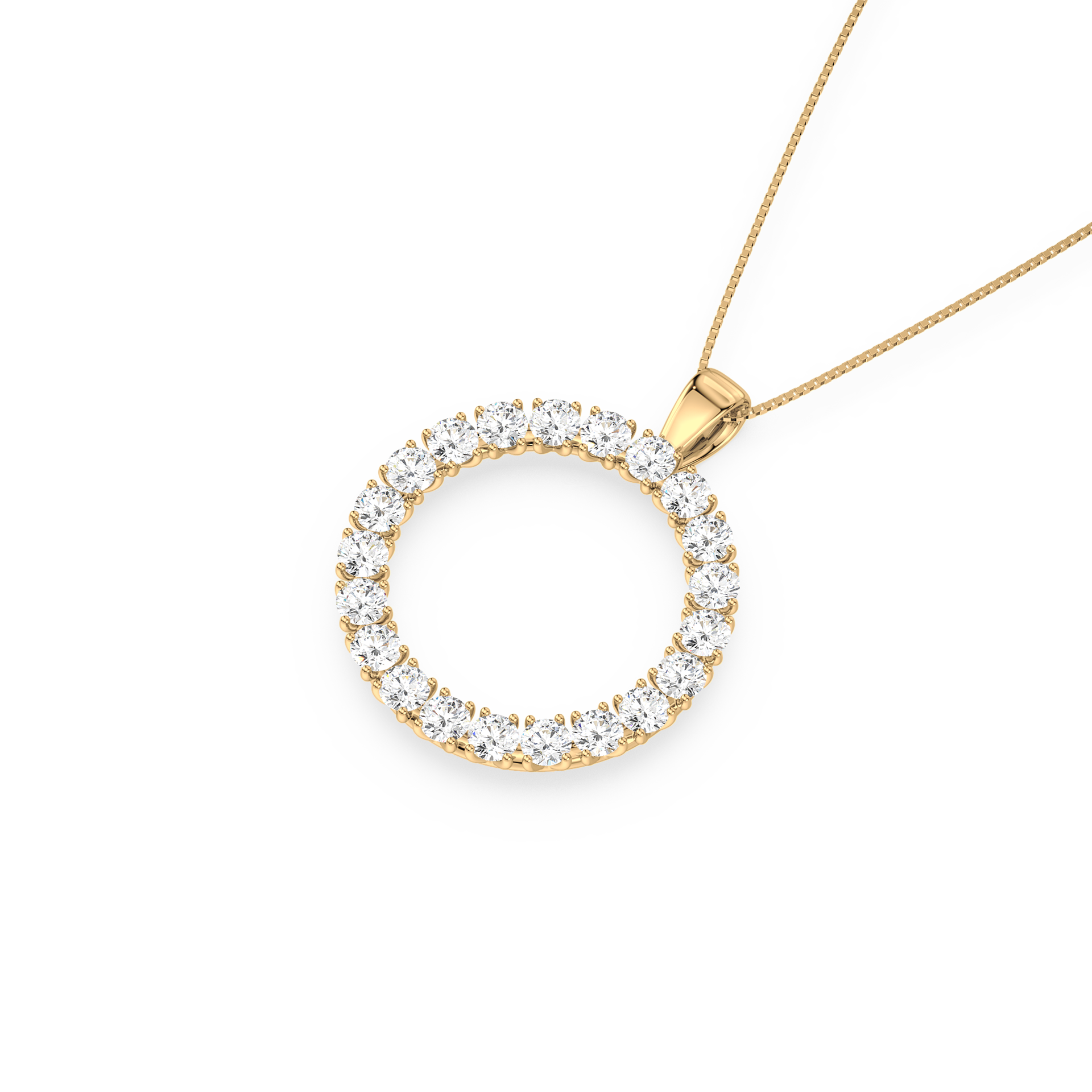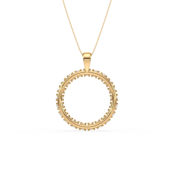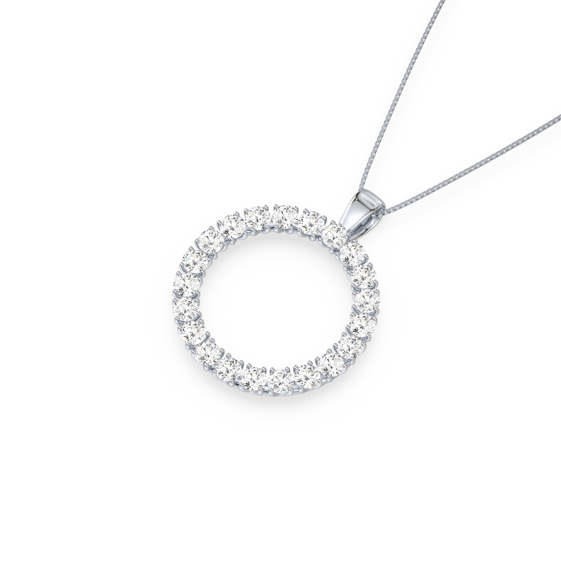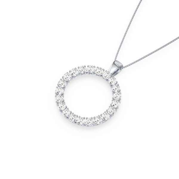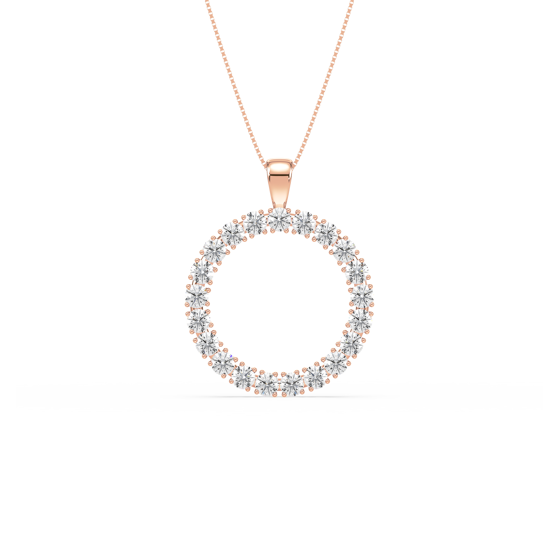 A dazzling circle pendant fully set with round brilliant diamonds, symbolizing eternity, wholeness, and timeless elegance. A versatile design perfect for both everyday sparkle and special occasions.