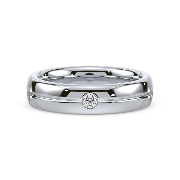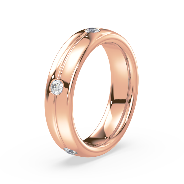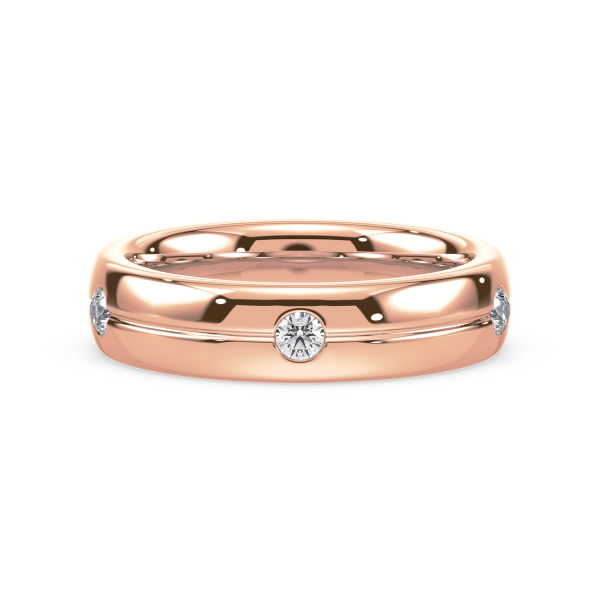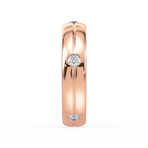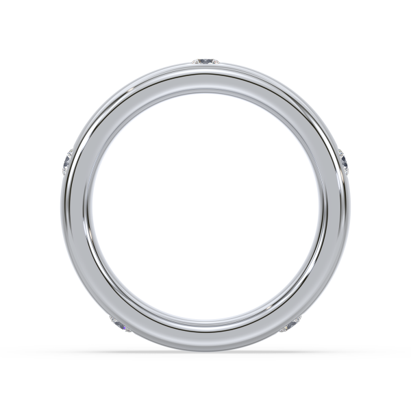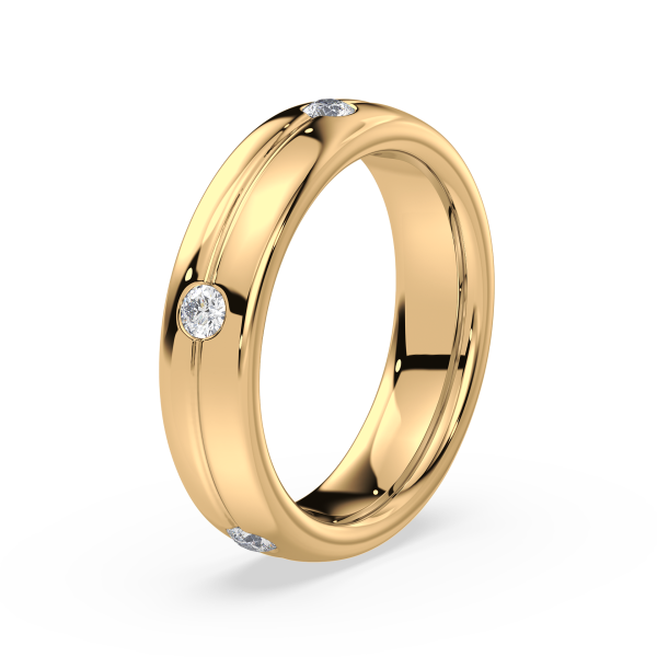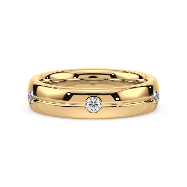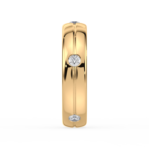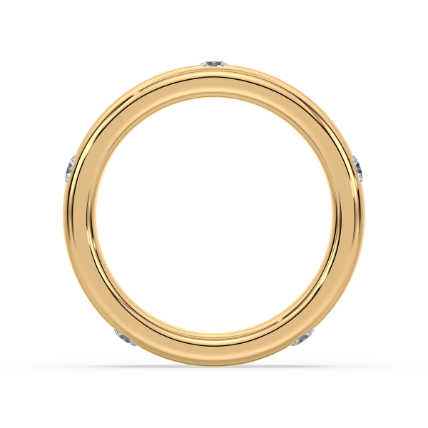 This refined gold band features evenly spaced bezel-set lab-grown diamonds, offering a sleek and modern take on the classic eternity design. Perfect as a wedding band, stacking ring, or everyday statement of sustainable luxury.
