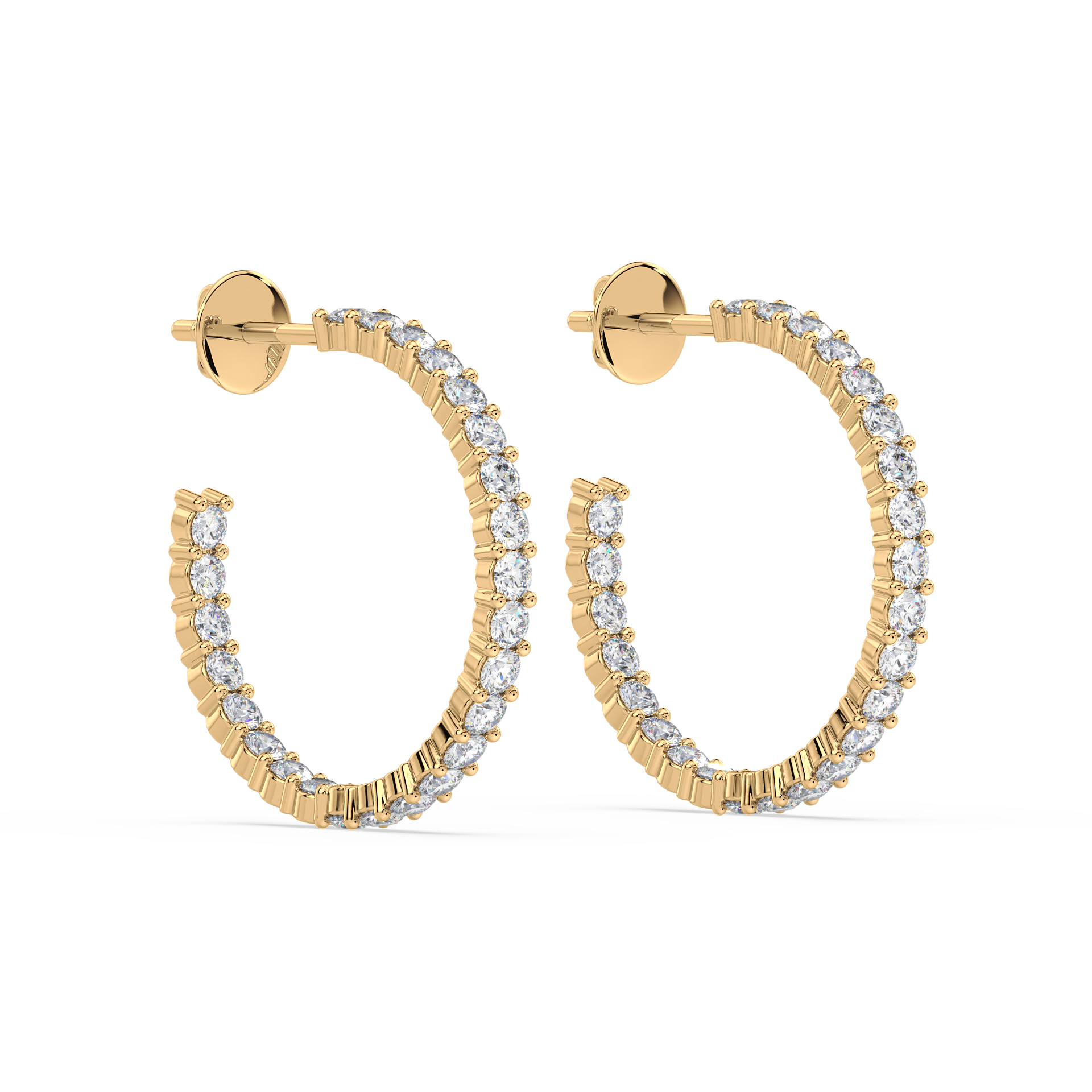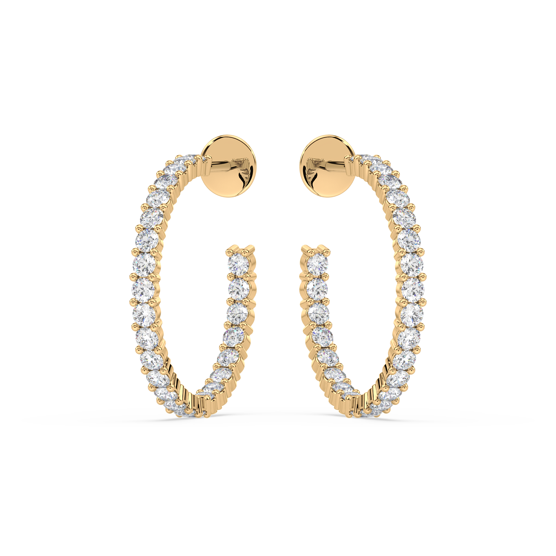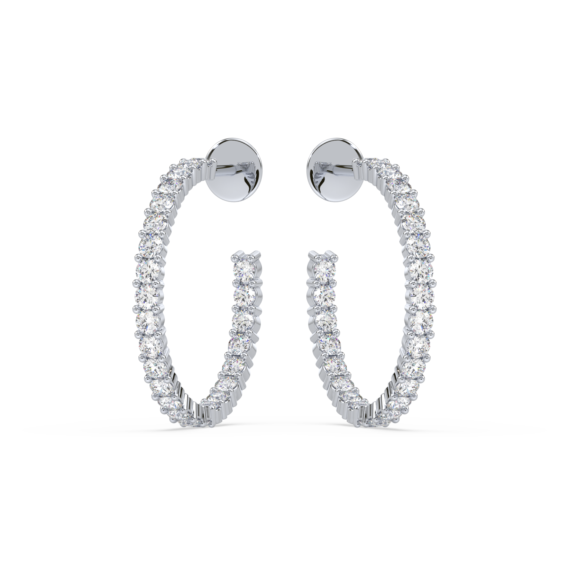 Striking large hoops adorned with sparkling diamonds on both inner and outer curves, ensuring brilliance from every angle. A statement design that radiates confidence and elegance.