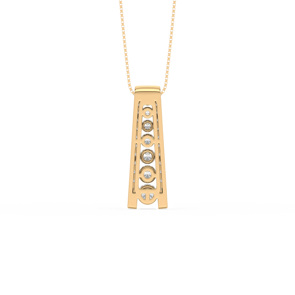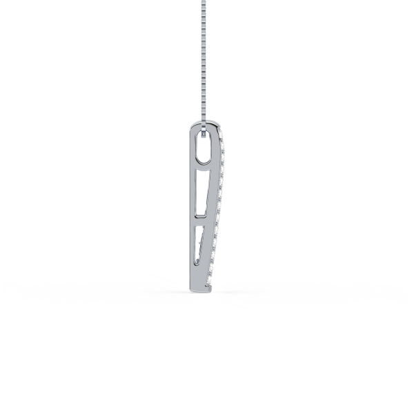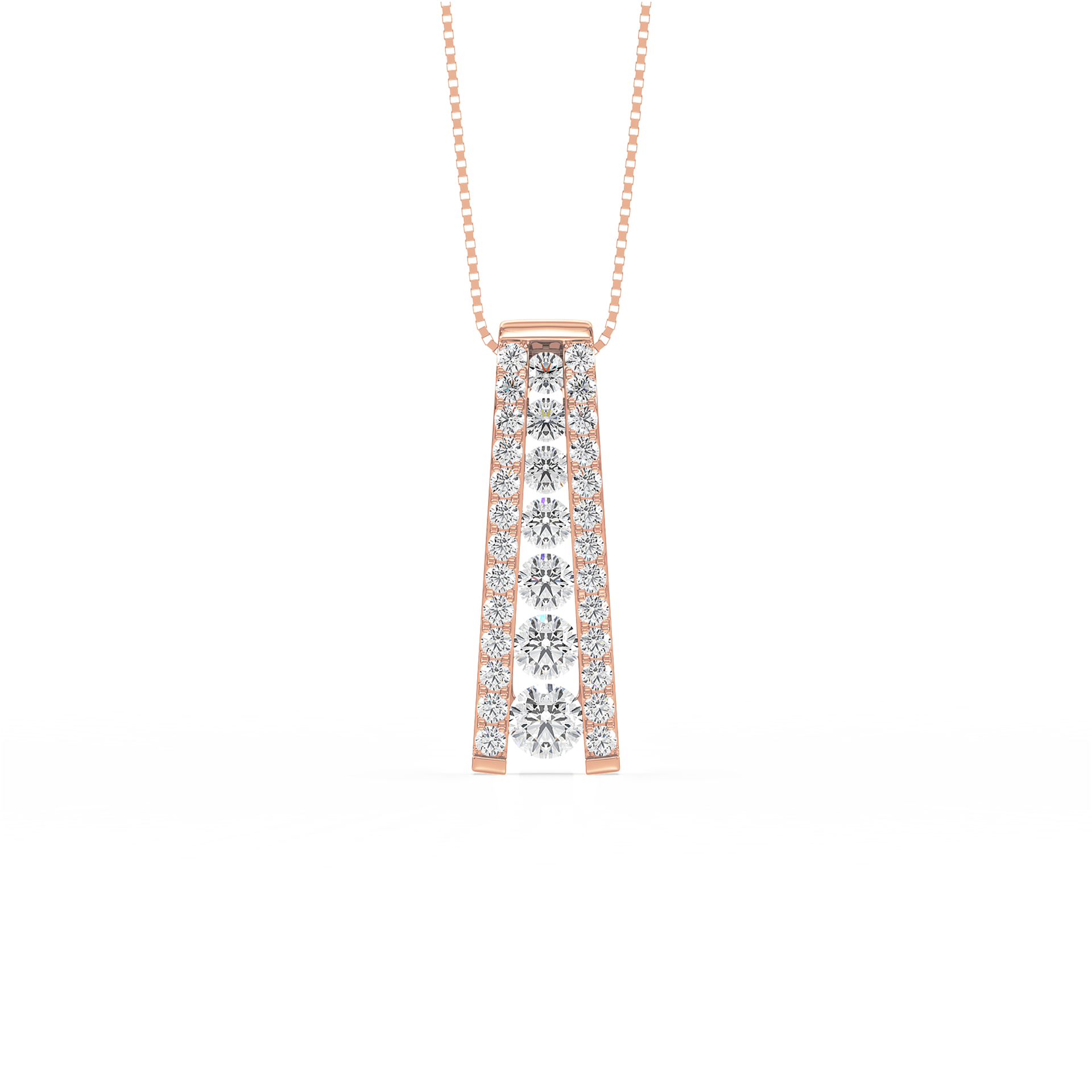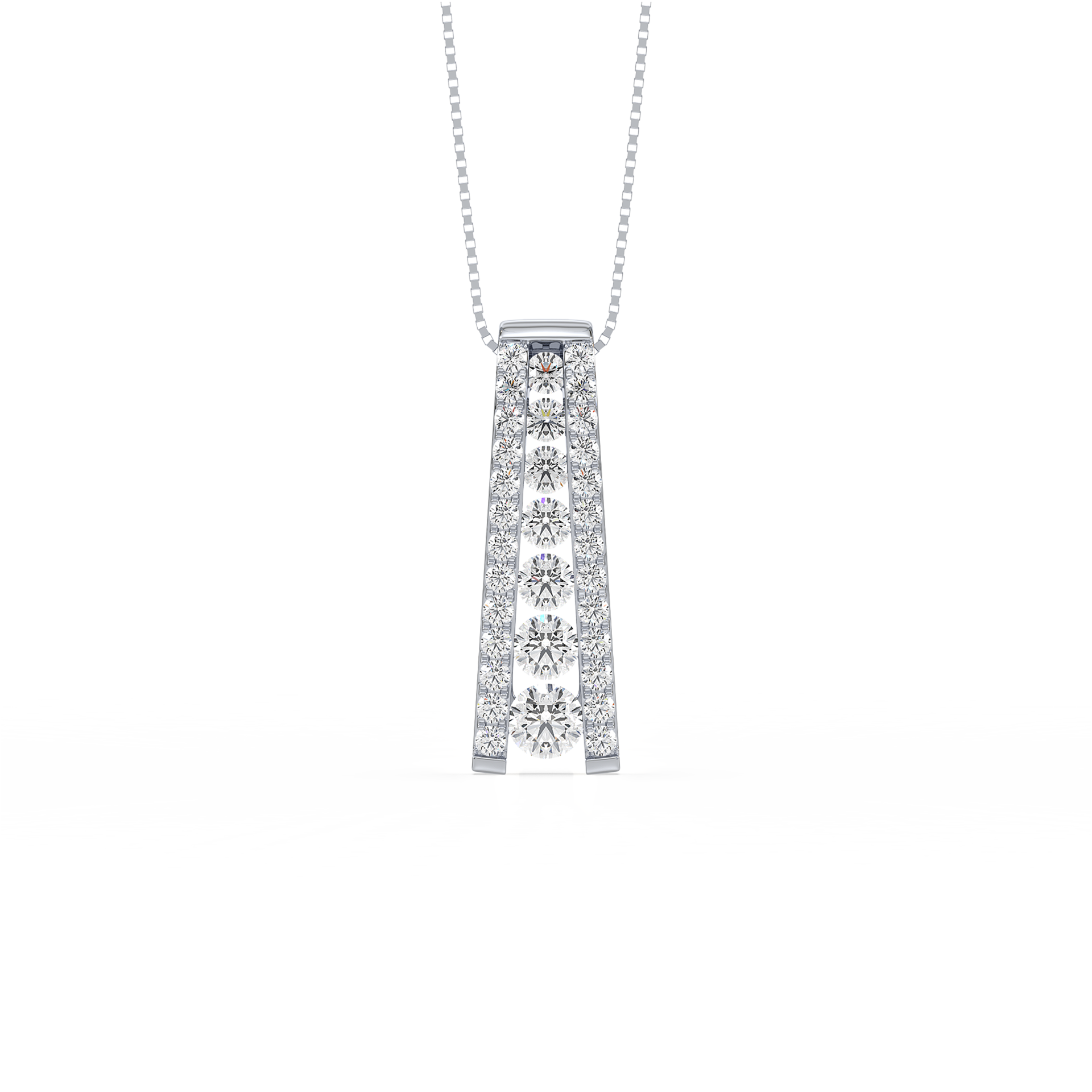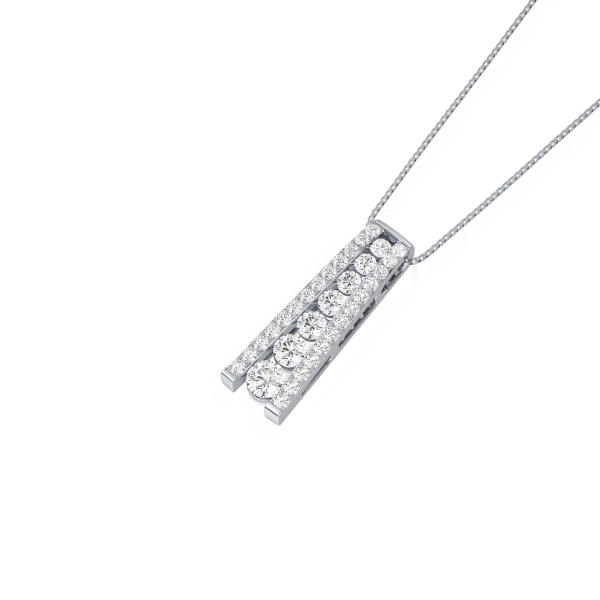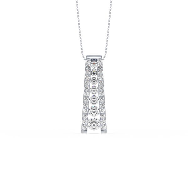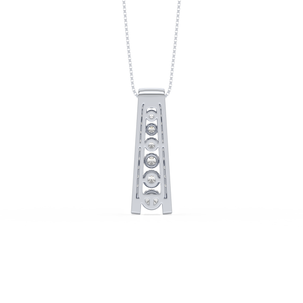 A sleek tapered bar pendant adorned with a vertical row of sparkling diamonds. A contemporary design that adds sophistication and brilliance to everyday style