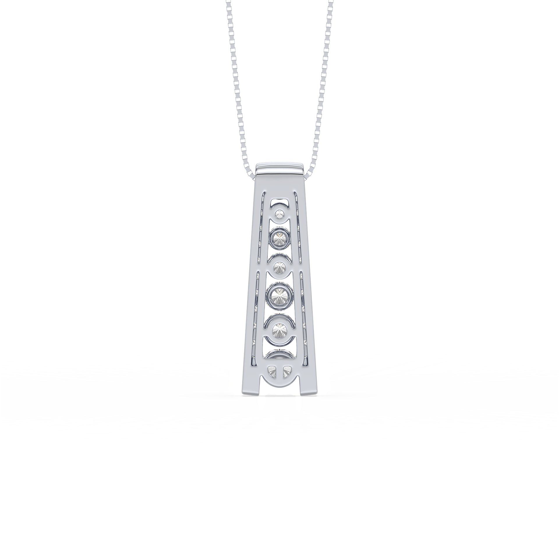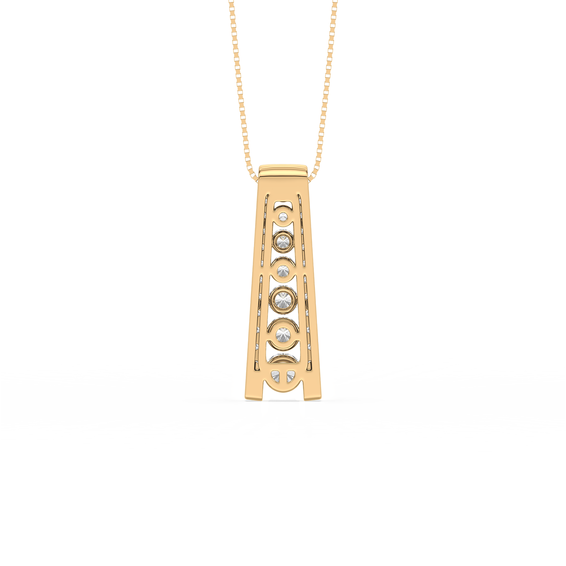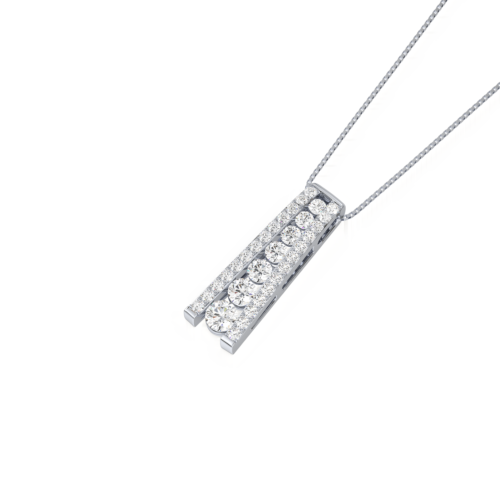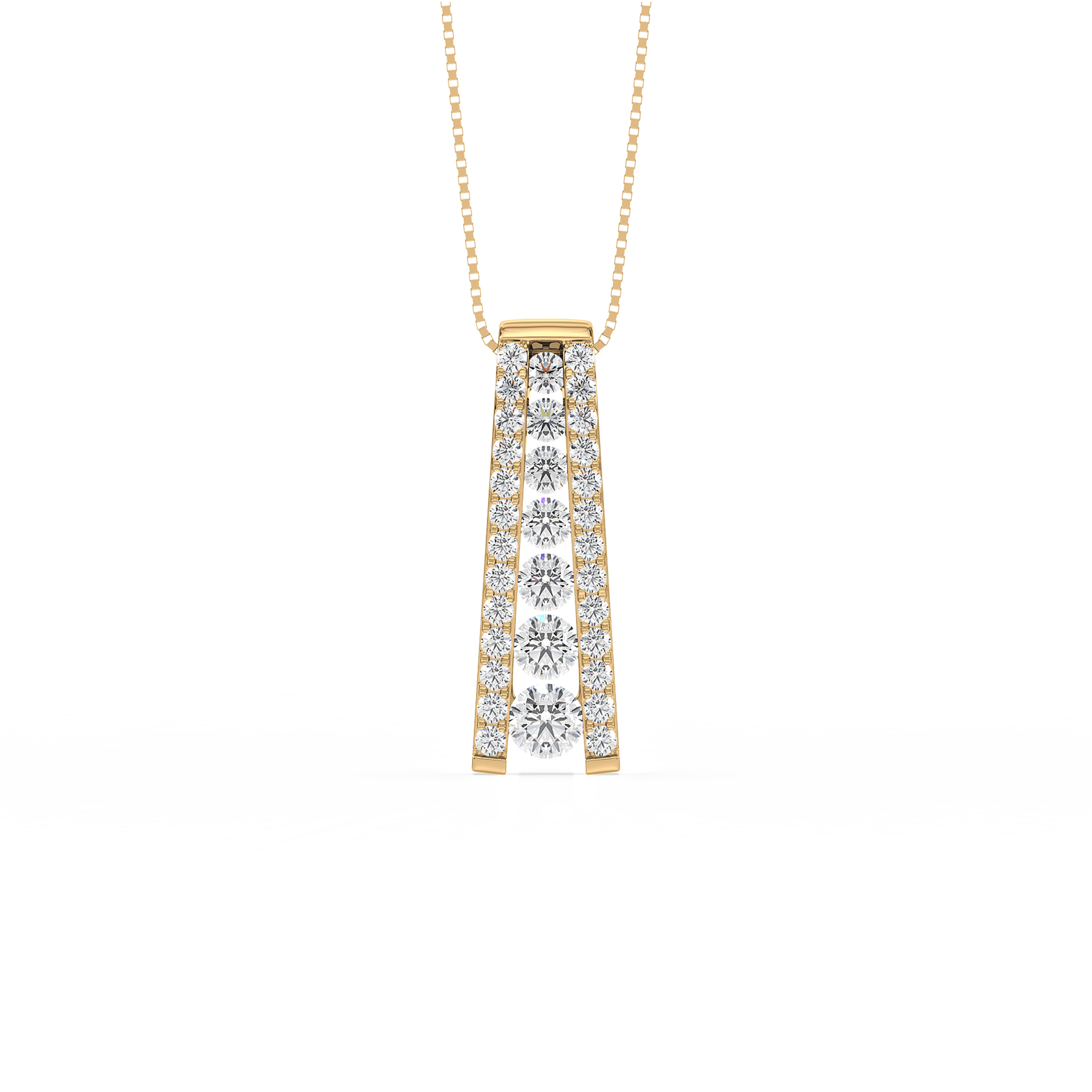 A sleek tapered bar pendant adorned with a vertical row of sparkling diamonds. A contemporary design that adds sophistication and brilliance to everyday style