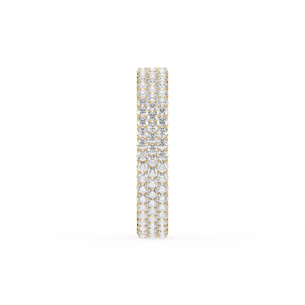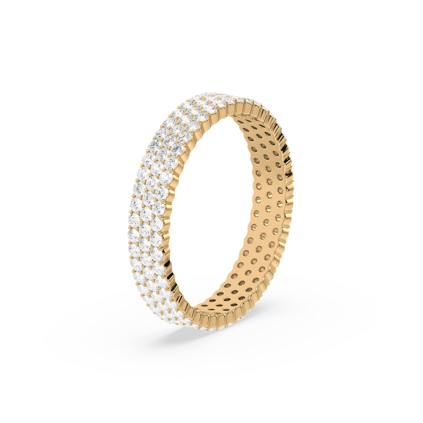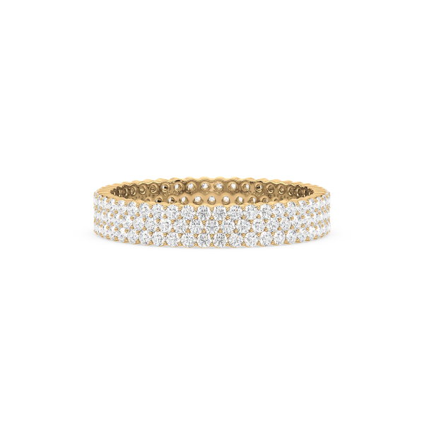 This eternity band dazzles with three continuous rows of round brilliant lab-grown diamonds, set closely together for maximum brilliance. Crafted in radiant gold, it’s a statement piece that symbolizes eternal love and strength with striking elegance.