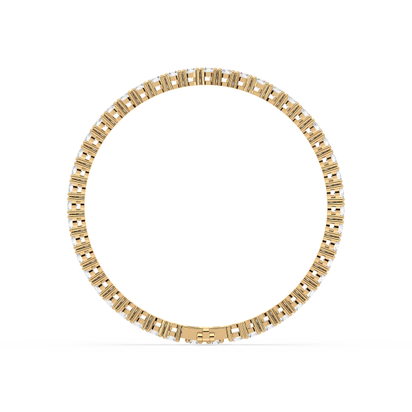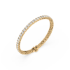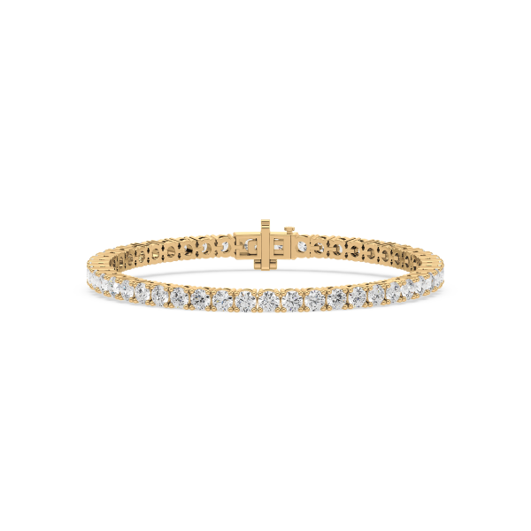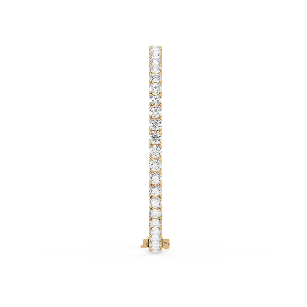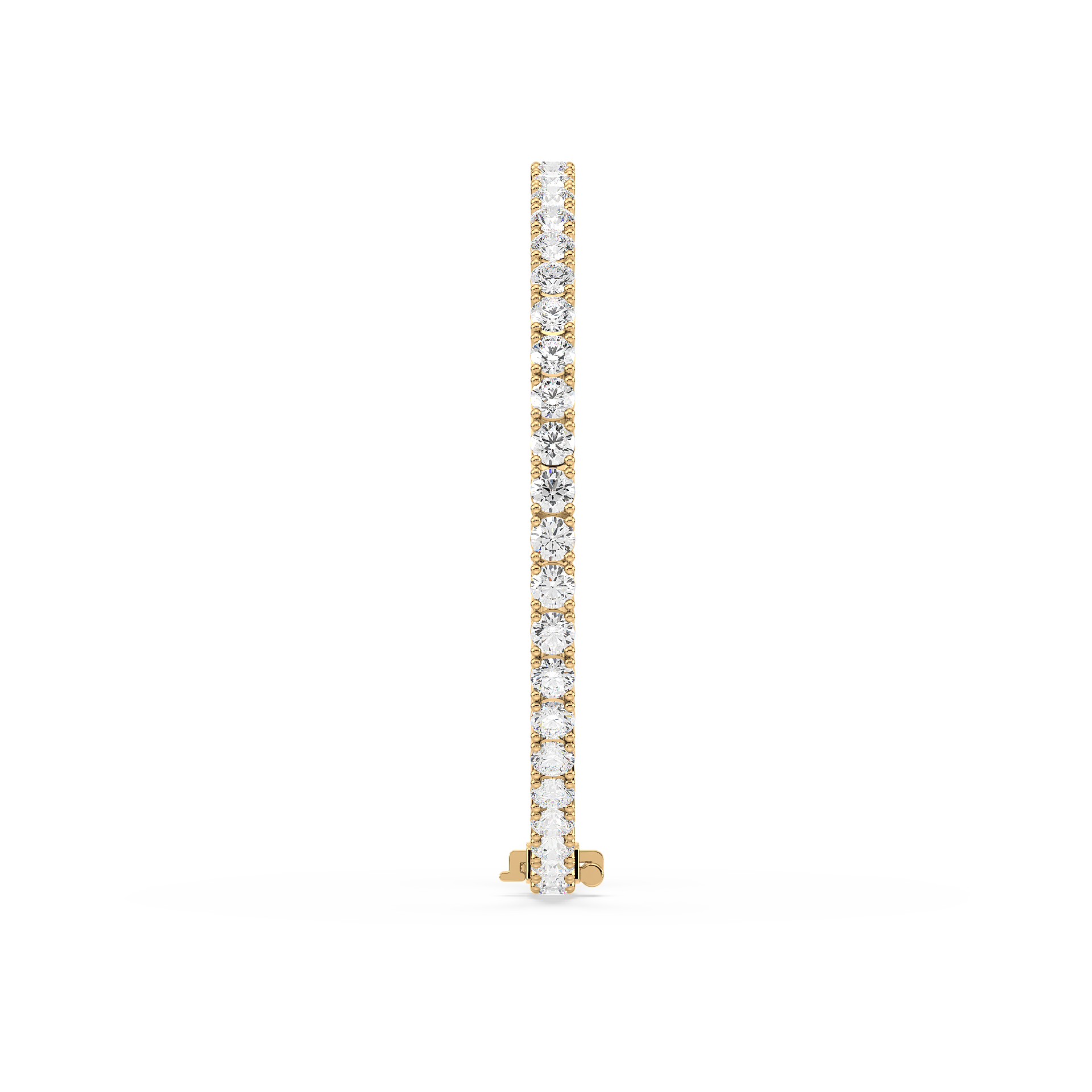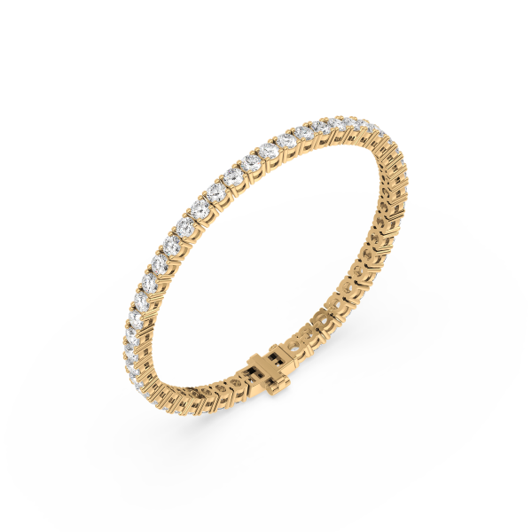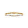 This timeless tennis bracelet features a seamless line of perfectly matched round brilliant diamonds, each set in lustrous yellow gold. The secure clasp ensures comfortable wear while highlighting the bracelet’s refined elegance. A versatile piece that transitions effortlessly from casual sophistication to evening glamour.