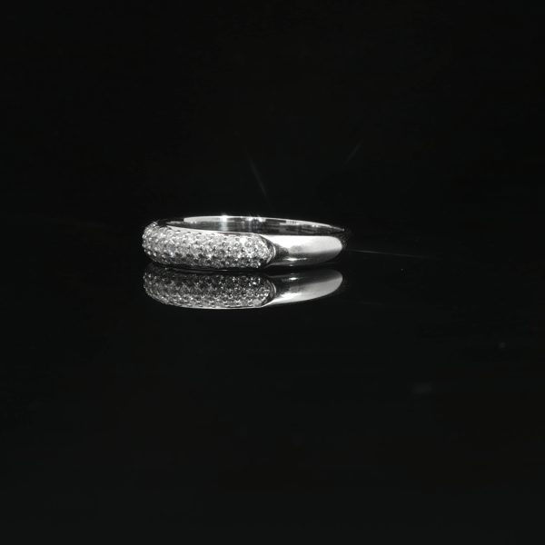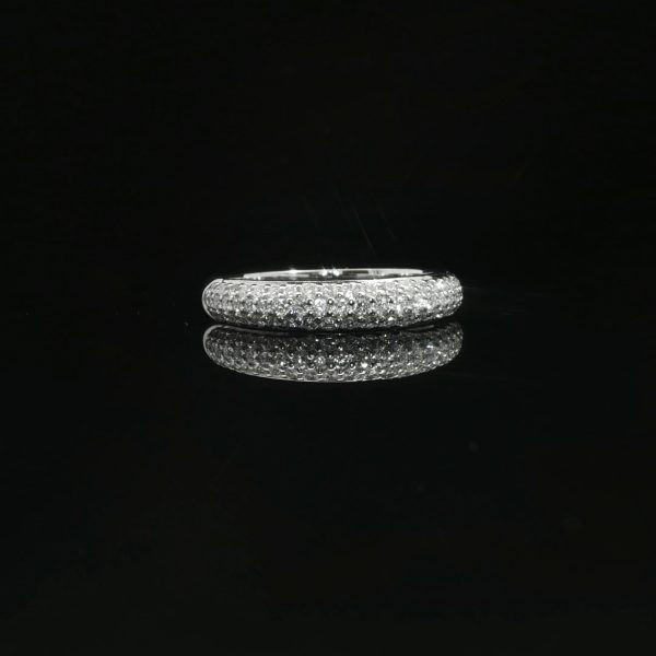 Experience the epitome of refined elegance with this yellow gold eternity band. The ring is encrusted with a continuous row of meticulously set, round cut diamonds. These diamonds, celebrated for their brilliant cut, are known for maximizing light return and creating remarkable sparkle and fire. A true statement of everlasting love and commitment.